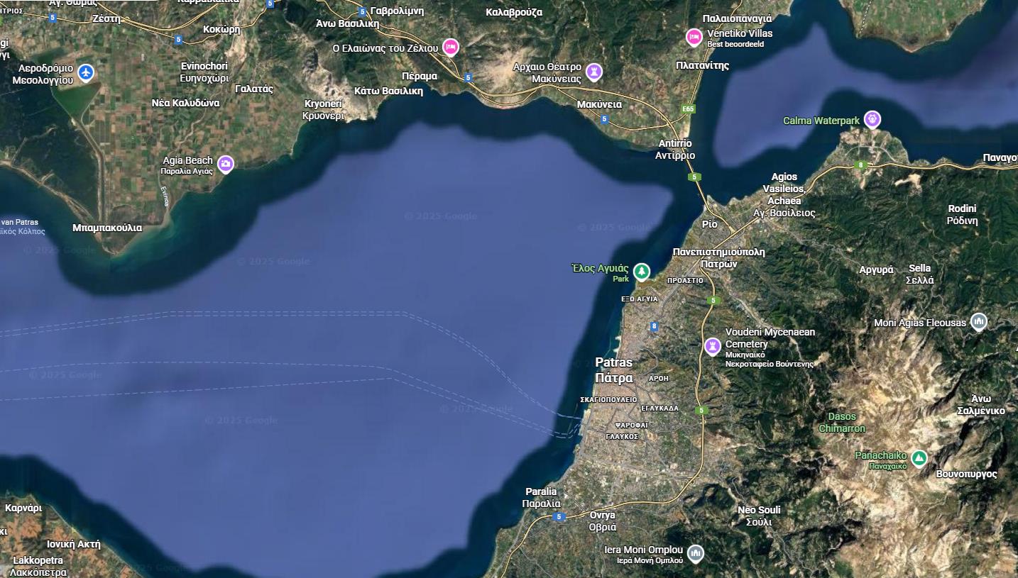 lang en ligt over de Golf van Korinthe, dichtbij Patra.