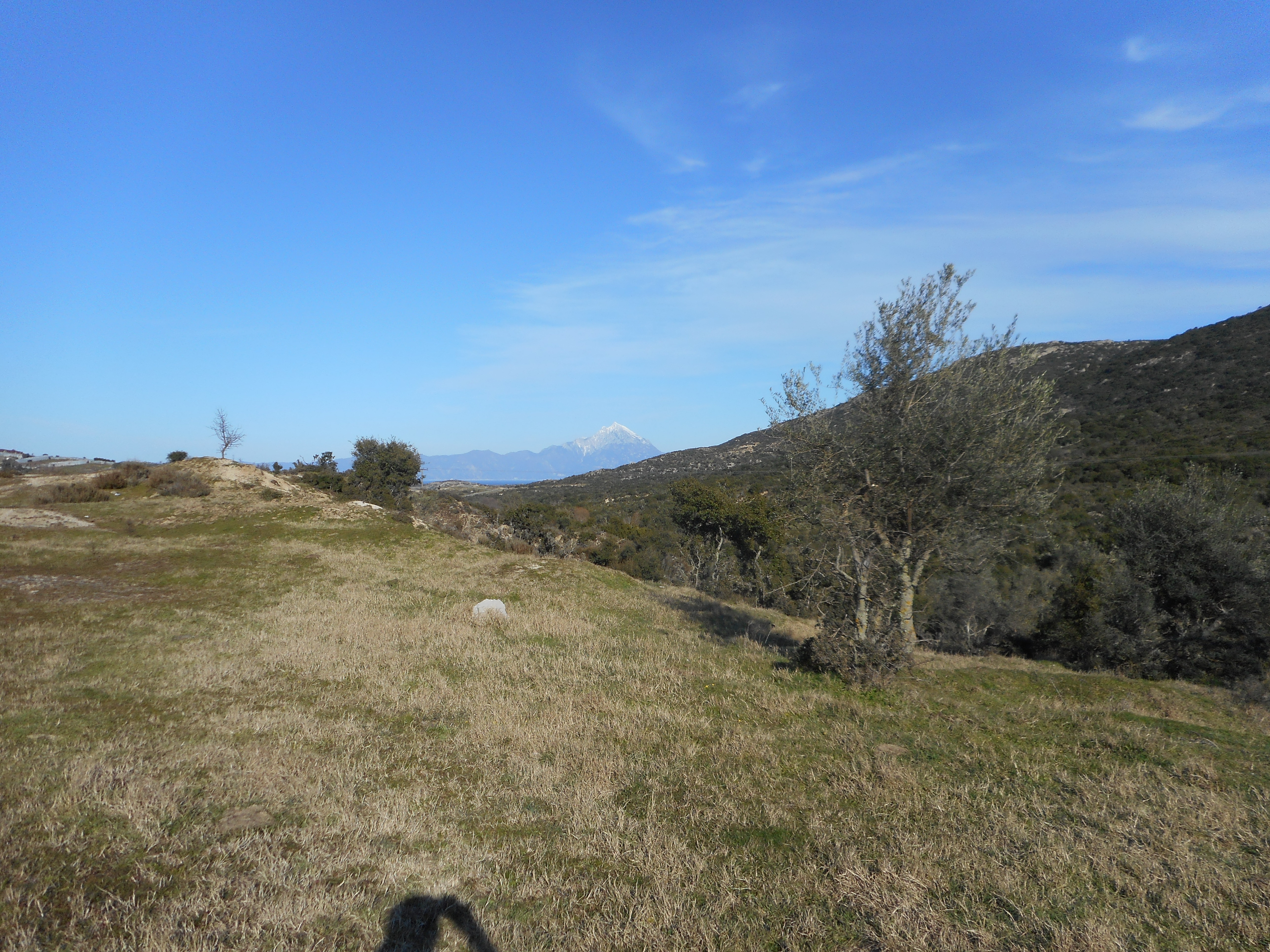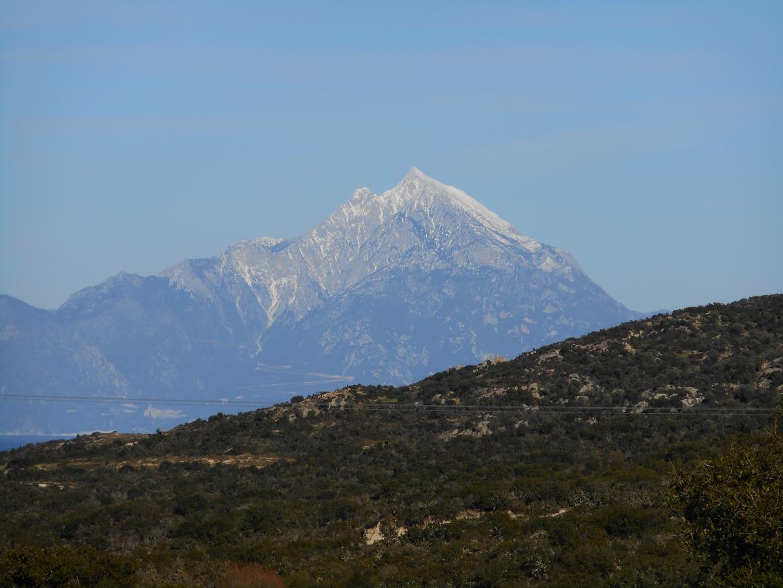 Agion Oros, de oostelijke landtong, is 45 kilometer lang en 5 tot 10 km breed. Over de hele lengte ligt een bergkam, waarvan de berg Athos de