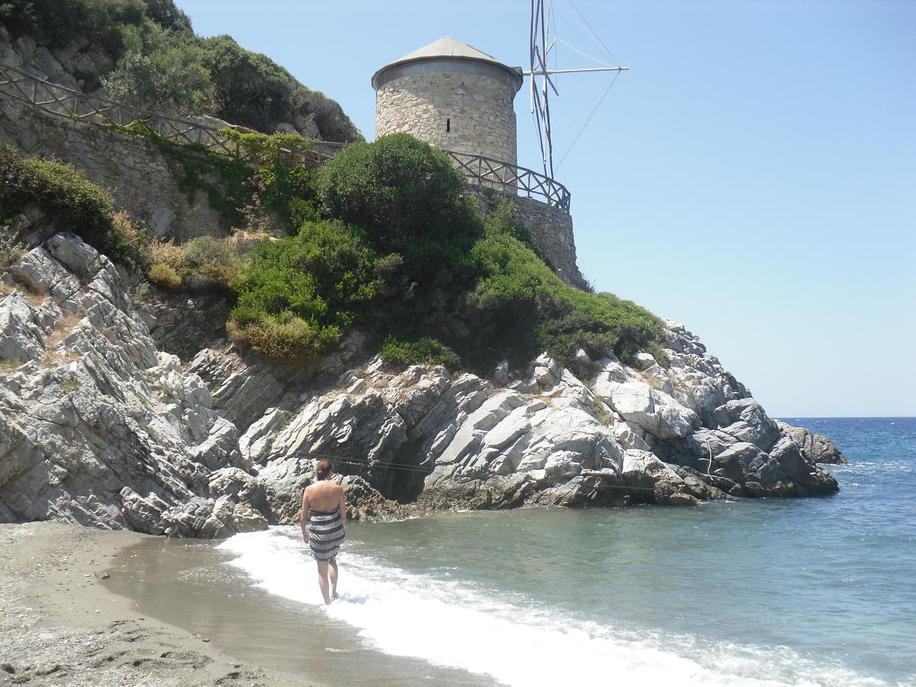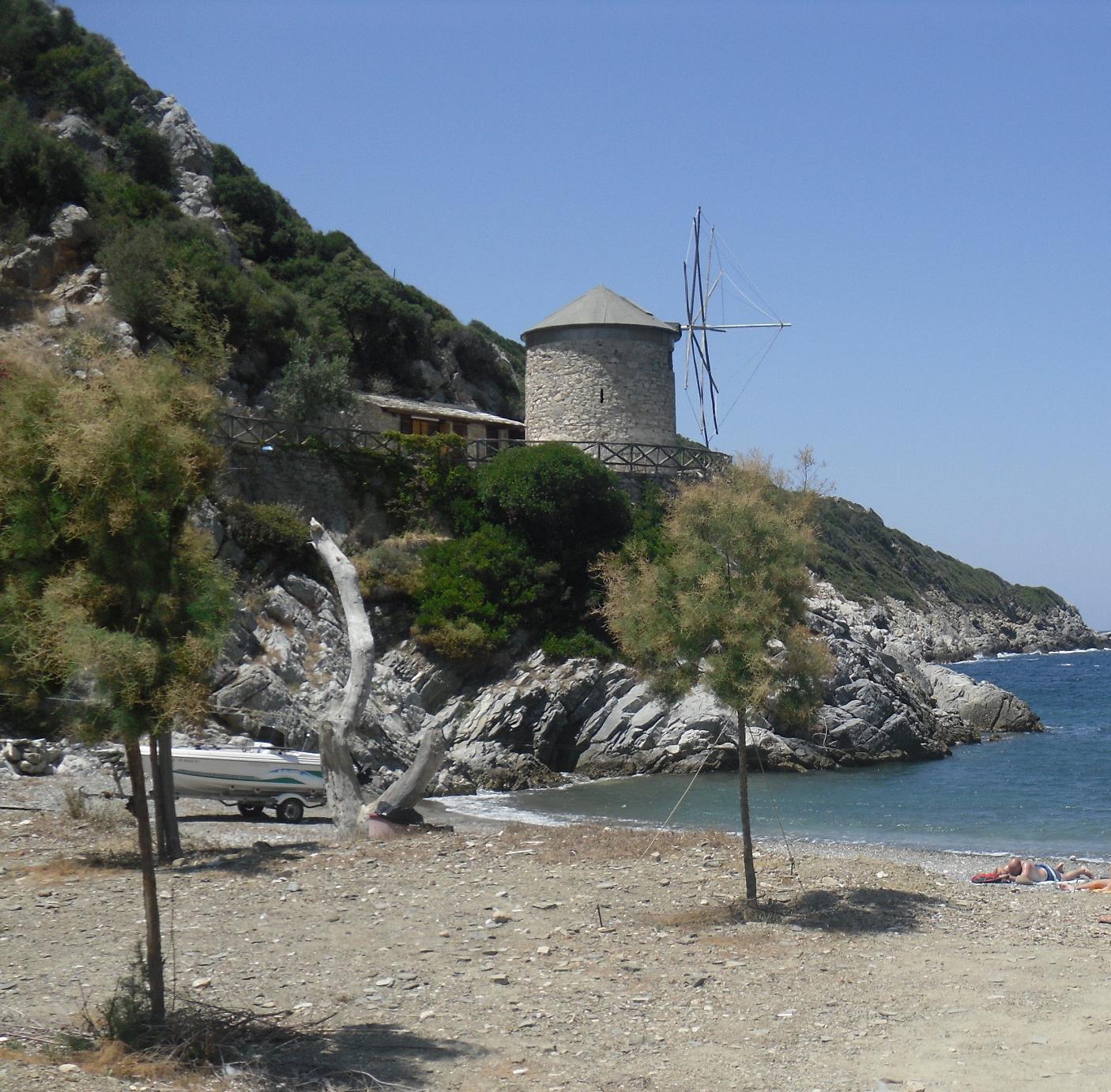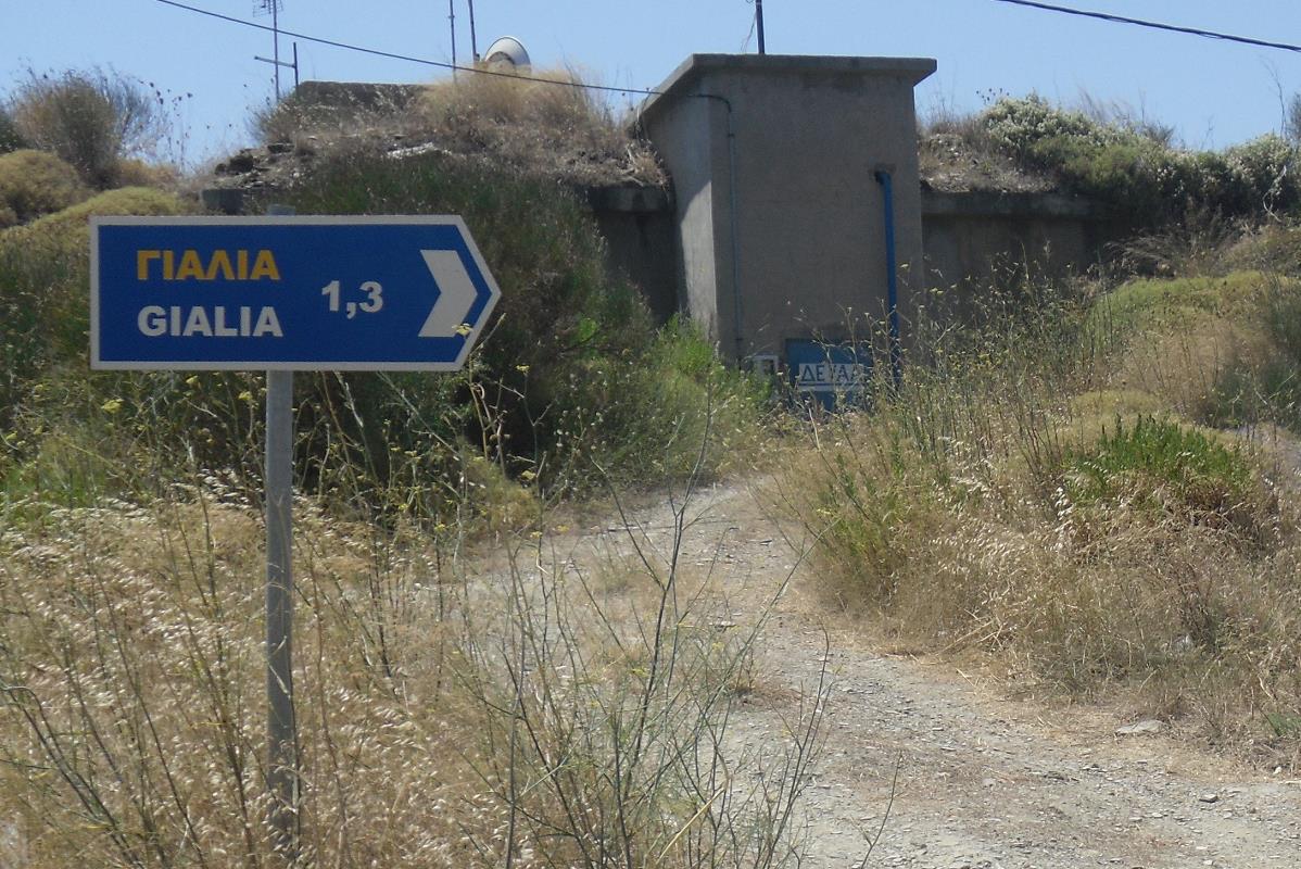 Gialia is het strandje dat ligt in de baai met de naam Gialia Bay. Het is direct te herkennen aan de oude molen die er nog staat.