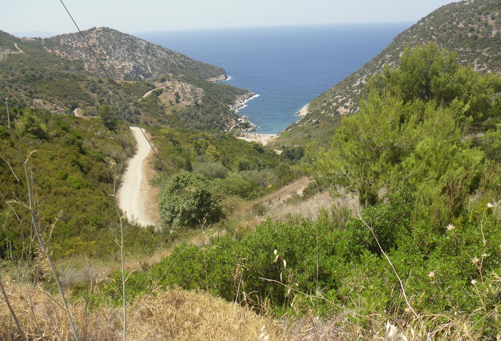 Je kunt het strandje al vanaf een grote afstand zien liggen, omdat er vanaf de heuvel vrij zicht is op de kust. Als je goed kijkt