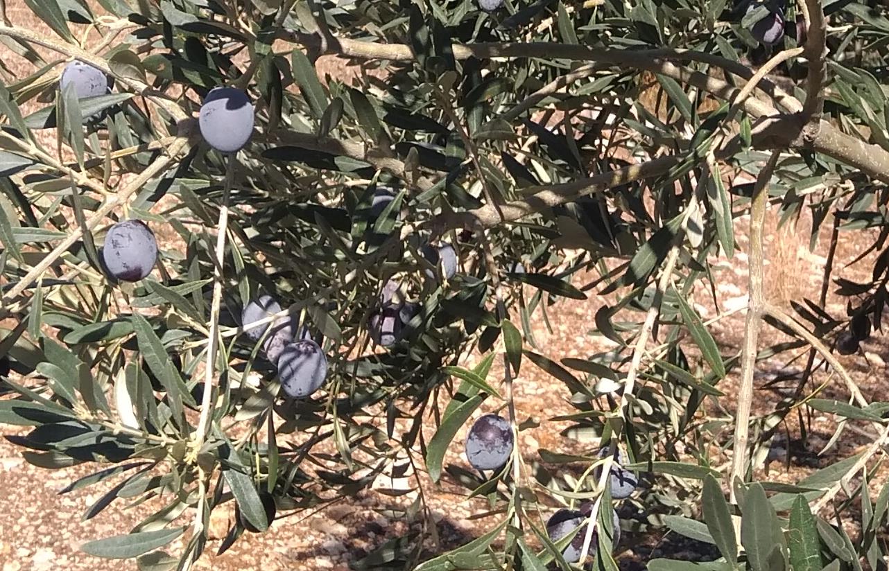 handjes vol olijven, echte Kalamata-olijven. We hadden het al op diverse plekken gezien: de oogst was begonnen. Wij gingen onze