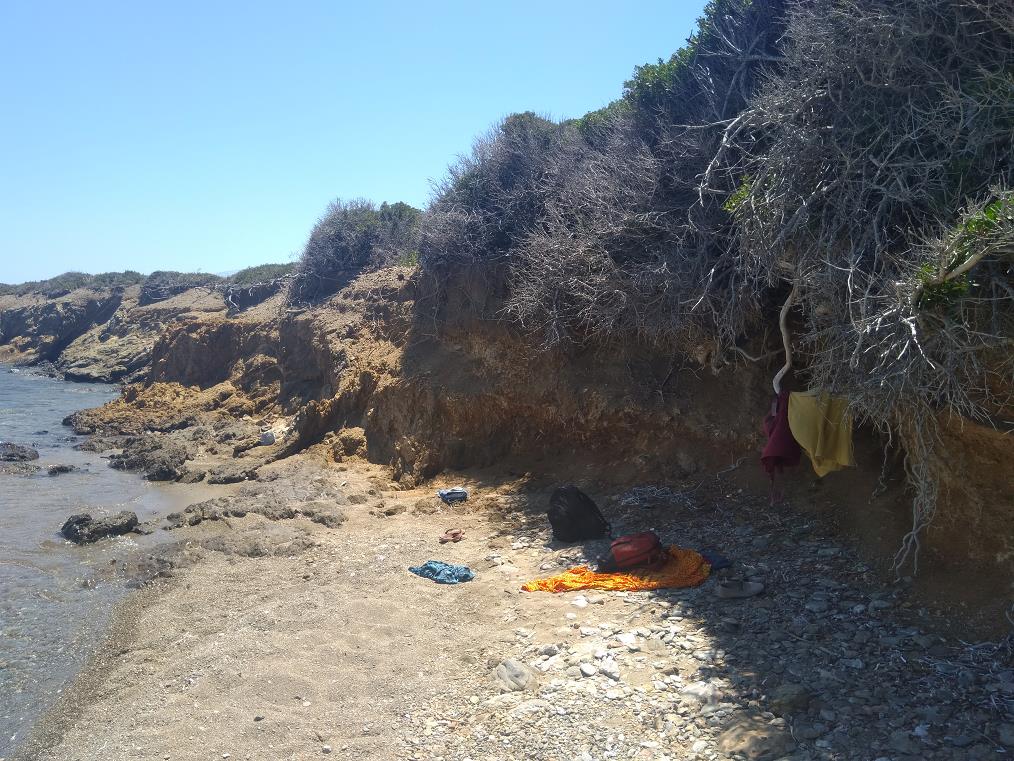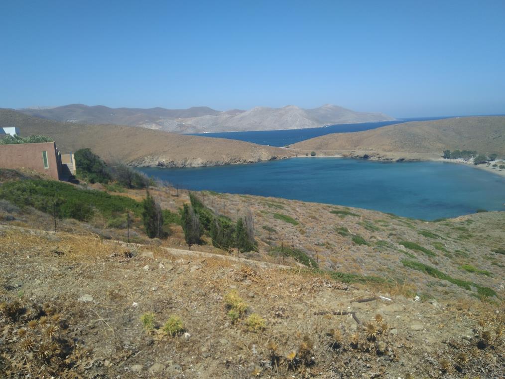 de Cycladen bent. De bodem van het eiland is bruin en grijs van kleur met kleine oases van groen en er zijn mooie baaien met een zandstand.