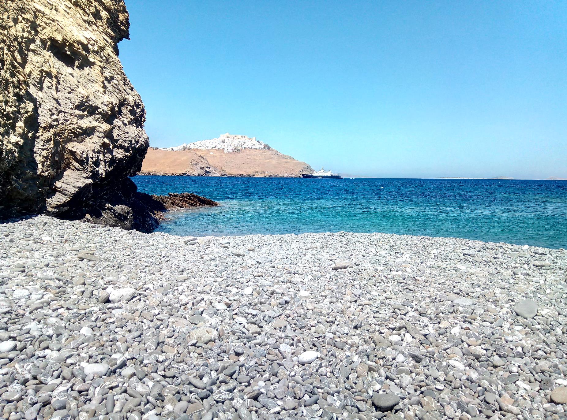 Tzanaki beach ligt een eindje ten zuiden van Livadi. Wanneer je vanaf de hoofdweg door Livadi, langs de kust naar het zuiden loopt, kom je eerst langs het strand van Agios Vasileos.