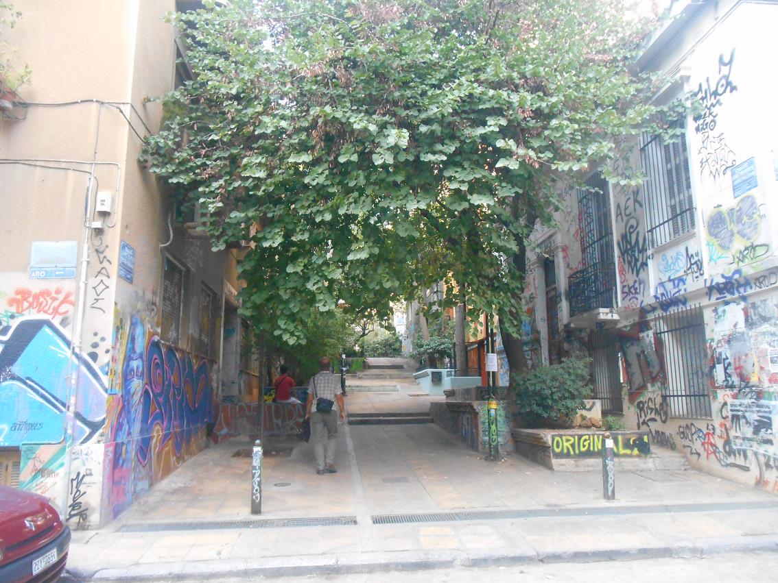 een statement leuzen geschilderd. Exarchia wordt in nieuvsberichten wel eens genoemd vanwege protestbijeenkomsten.