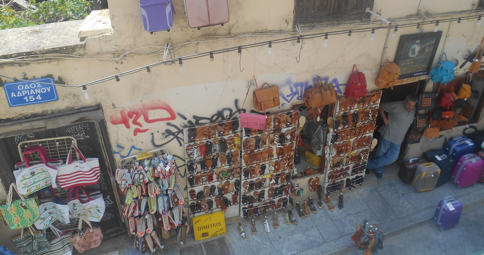 De odos Adrianou loopt weliswaar van Plaka naar Monastiraki, maar na een onderbreking bij de Aeolou, loopt hij