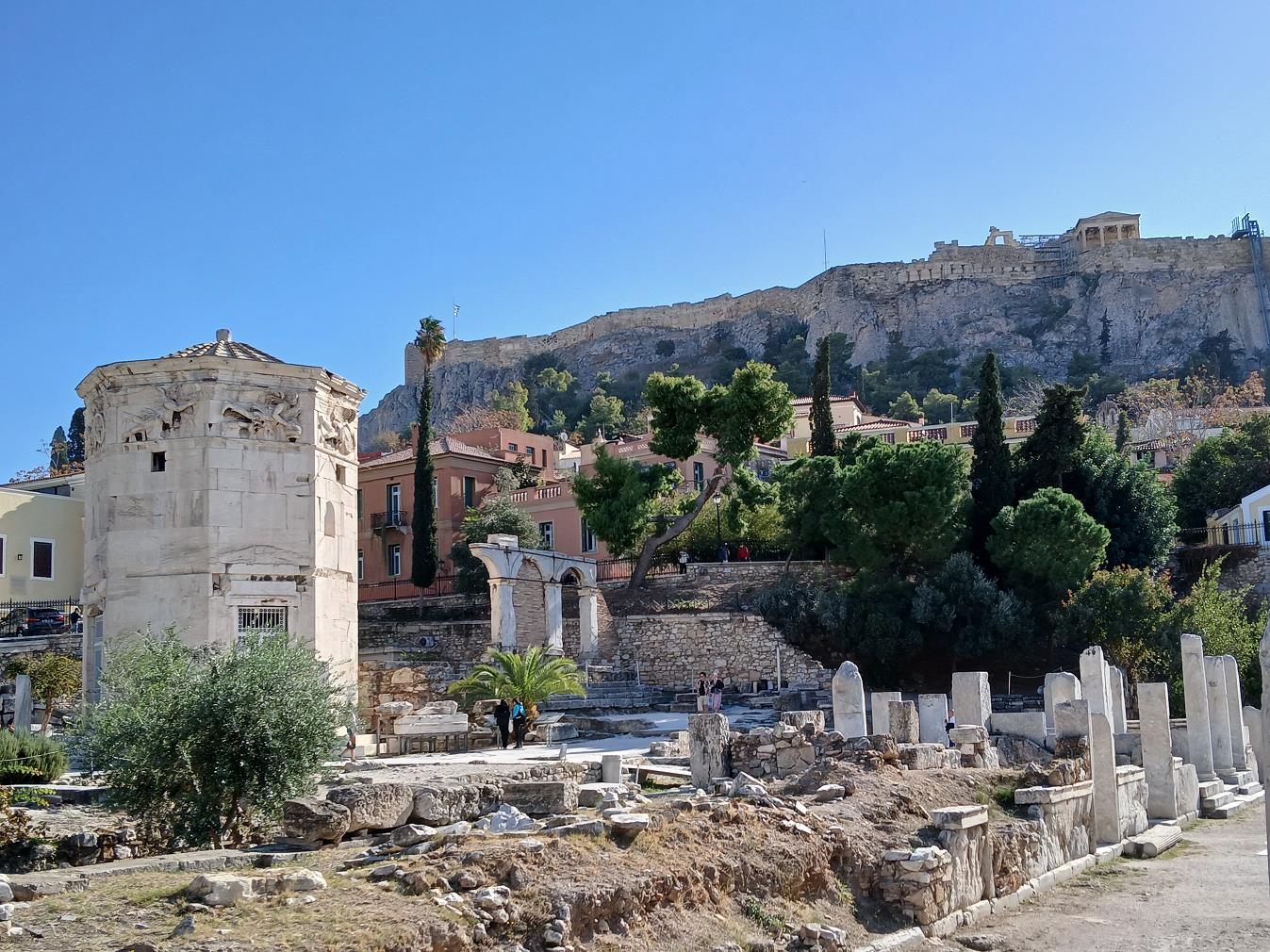 Ten noorden van de Akropolis, aan het einde van de Eolou (Aiolou) ligt het gebied van de Romeinse Agora, de Romeinse markt.