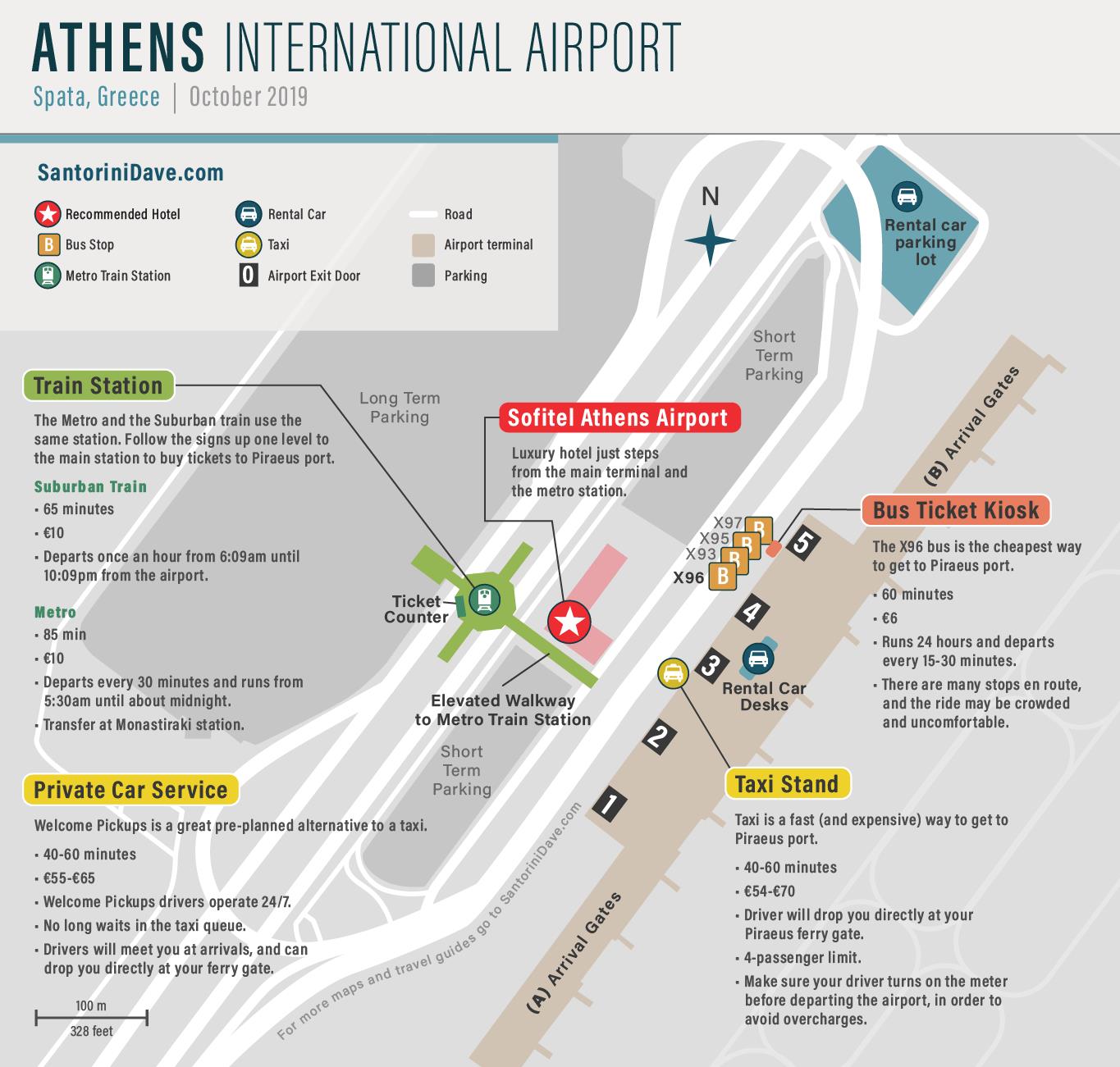 Het vliegveld van Athene, Eleftherios Venizelos, is mooi geconstrueerd, maar ook wel ingewikkeld.