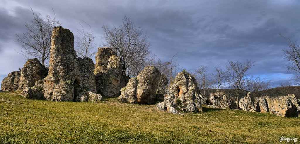 genoemd op internet, bij een zoektocht naar bezienswaardigheden. Even buiten het dorp staat er een oude formatie stenen, die een