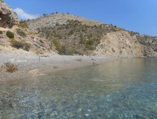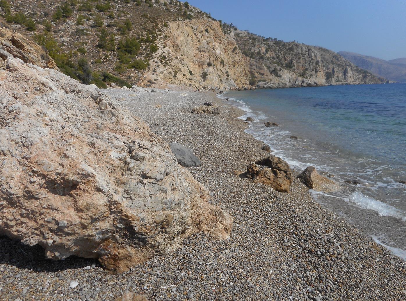 in de richting van het strand en ga dan het strand op. Wanneer je voorbij de grote rotsen loopt, die het strand