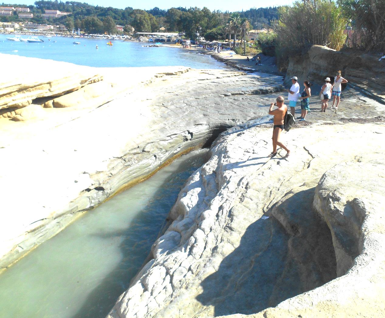 Door de bijzondere vorm van de rotsen zijn er in Sidari meerdere plekken waar je aan het strand kunt liggen en het water