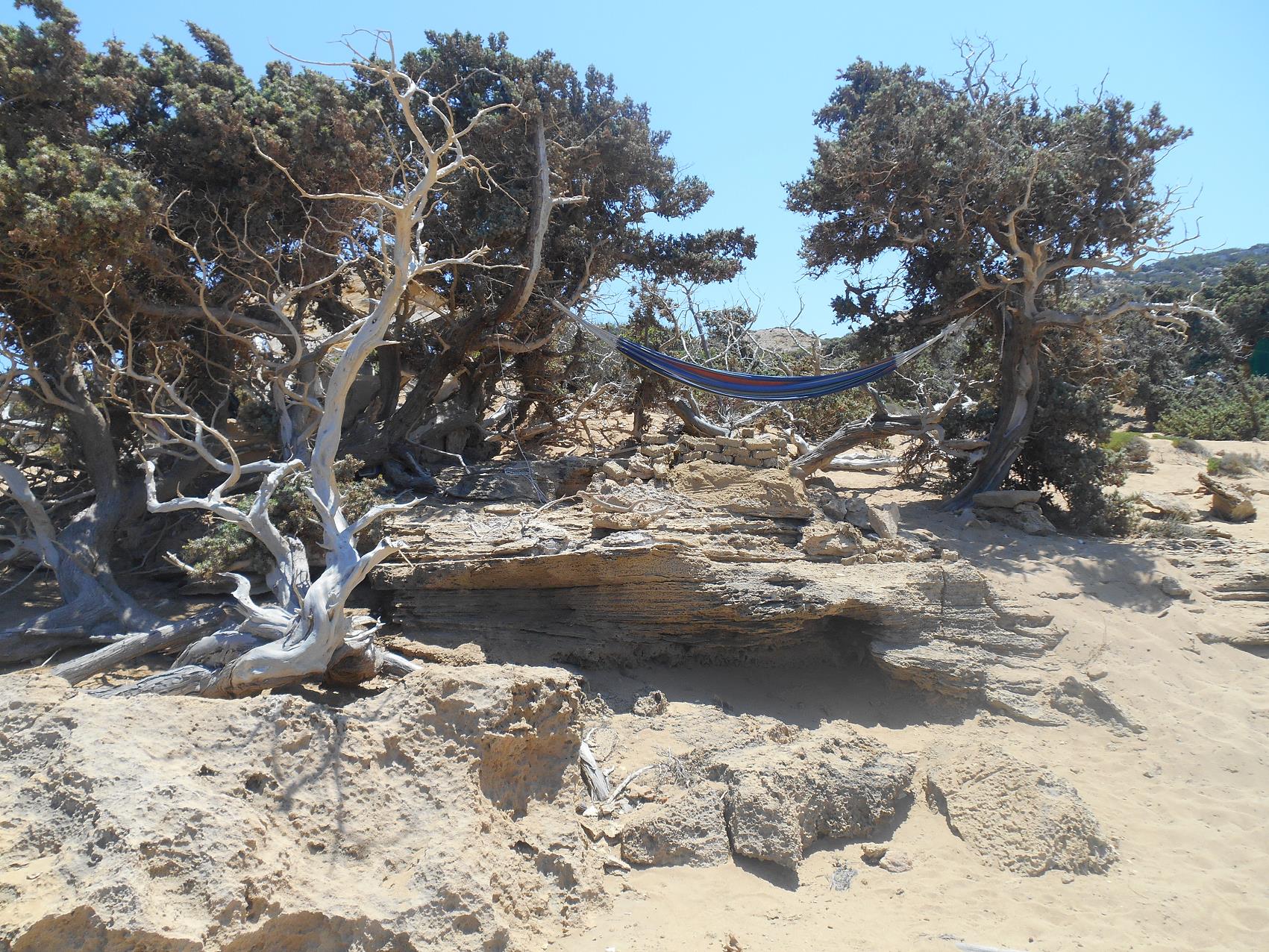 Er is geen luxe, alleen de zee, het zand en een prachtig uitzicht op het eiland Kreta.