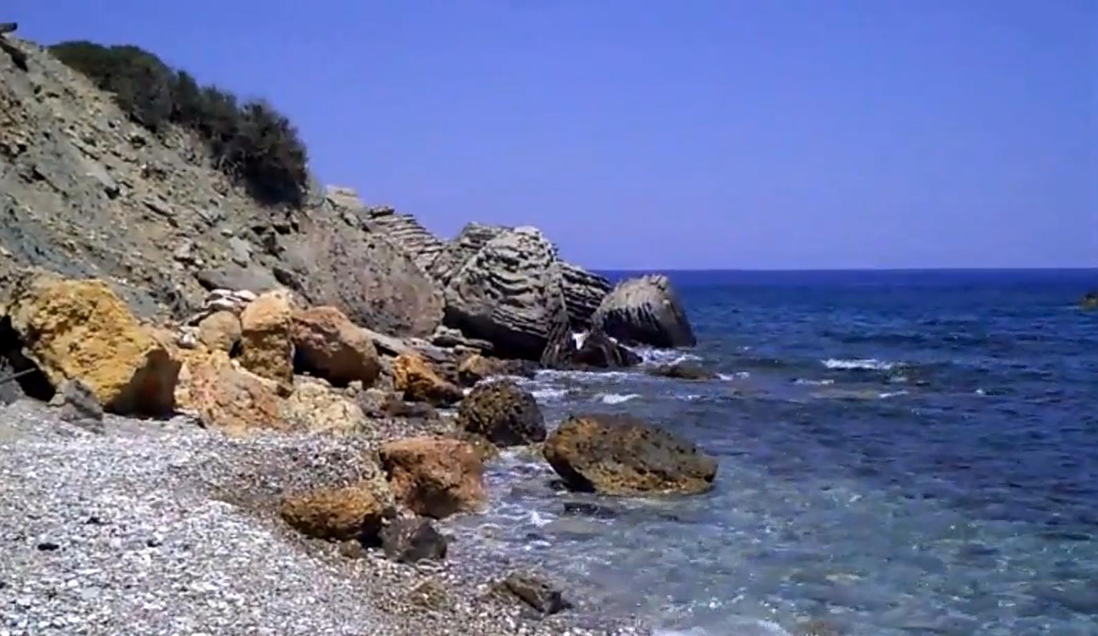 naar het Sarakiniko strand, maar sla linksaf. Er staat een bord. Het is een mooie wandeling langs de kustlijn.