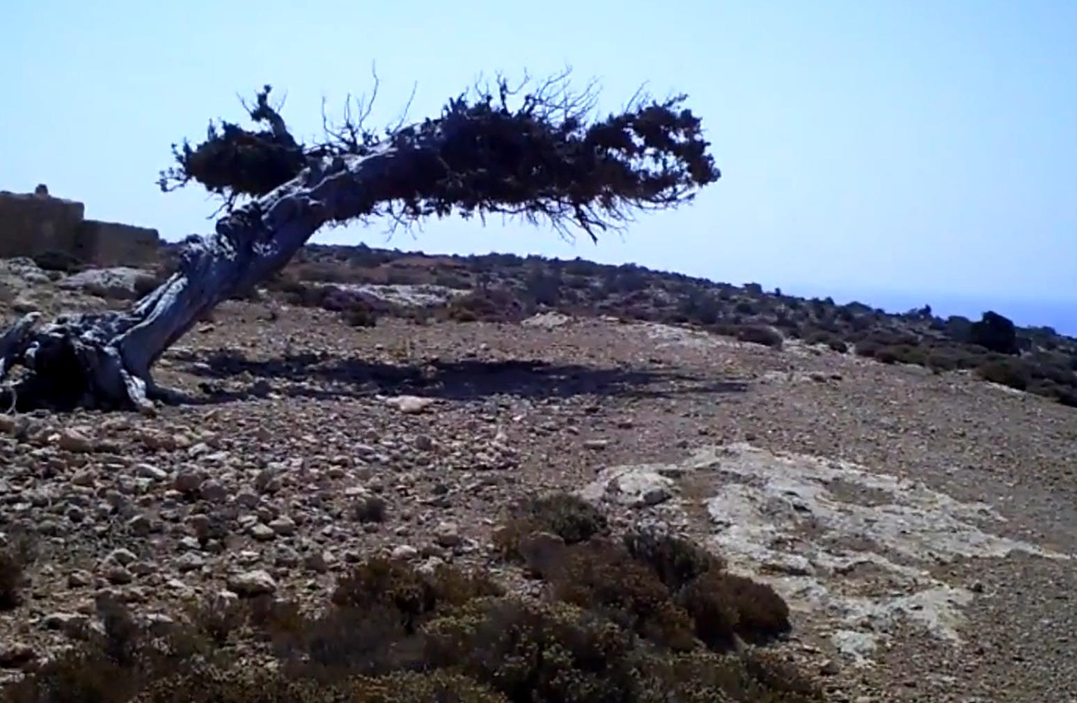 De rechter kaart is getekend door Stefanos, één van de eilandbewoners zelf. Zijn zoon is (in 2013) de enige