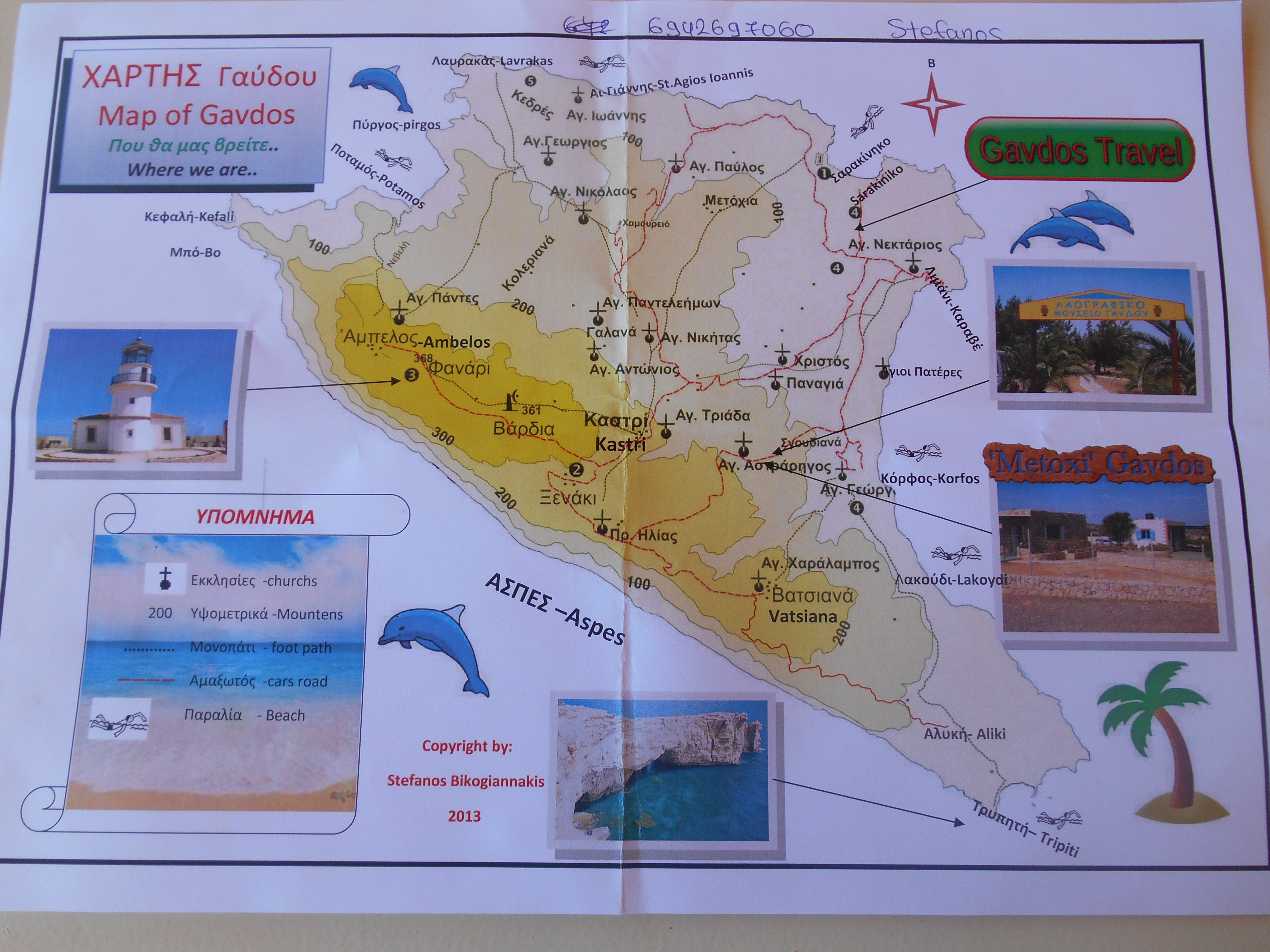 Er zijn verschillende kaarten van Gavdos in omloop. De linker is samengesteld uit een samenvatting van de