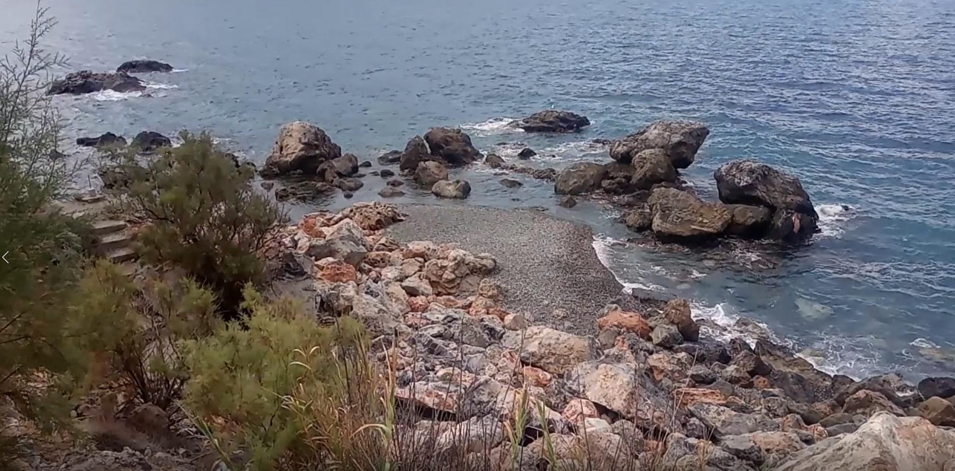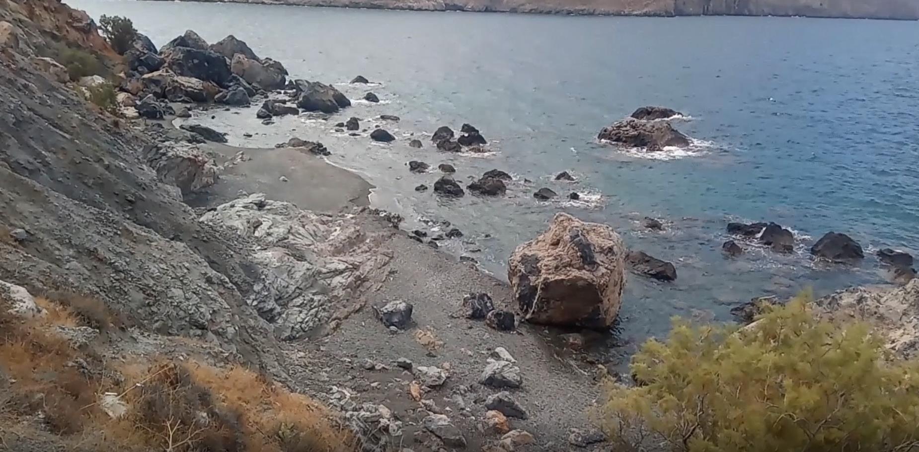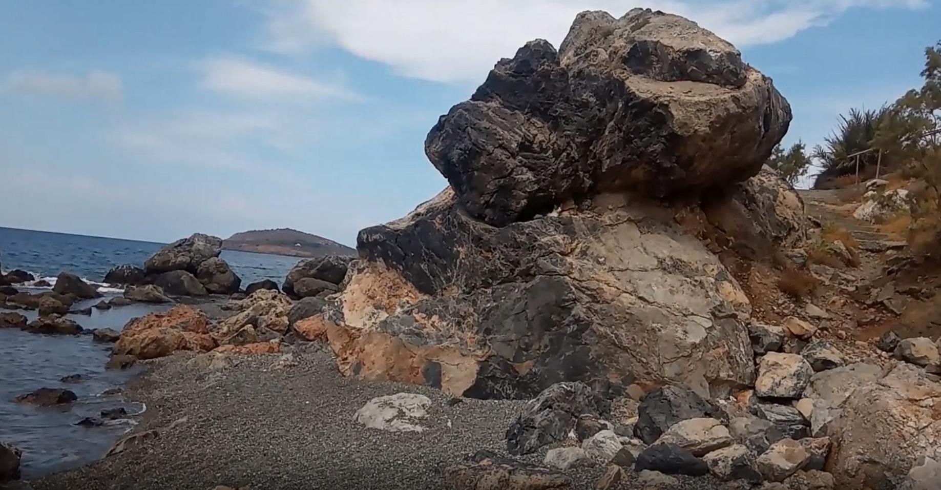 van Kalymnos. Het bestaat uit grote en kleine zwarte kiezels en loopt snel af in zee. Wanneer er veel wind is