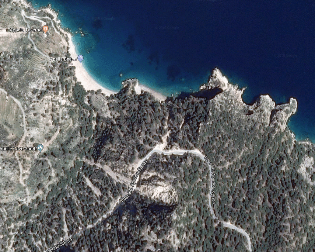 De sattallietfoto laat je vermoeden dat er ook een pad is naar het naastgelegen strand,