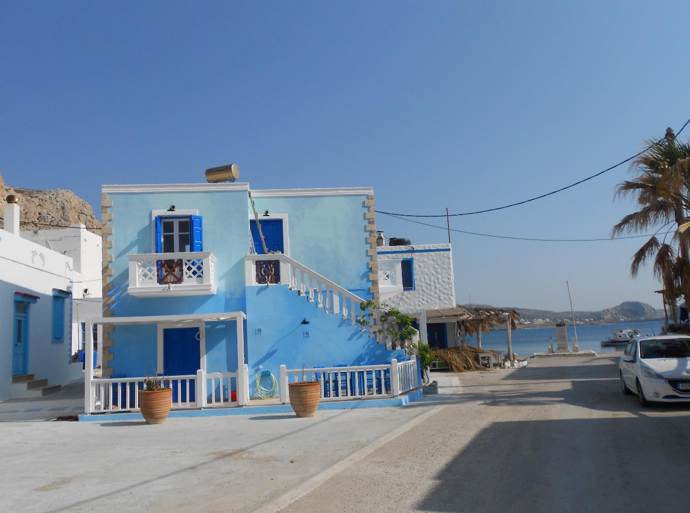 waar de Griekse sfeer nog volop aanwezig is. Er is een mooi strand, aan de voet van de rots. Karakteristiek