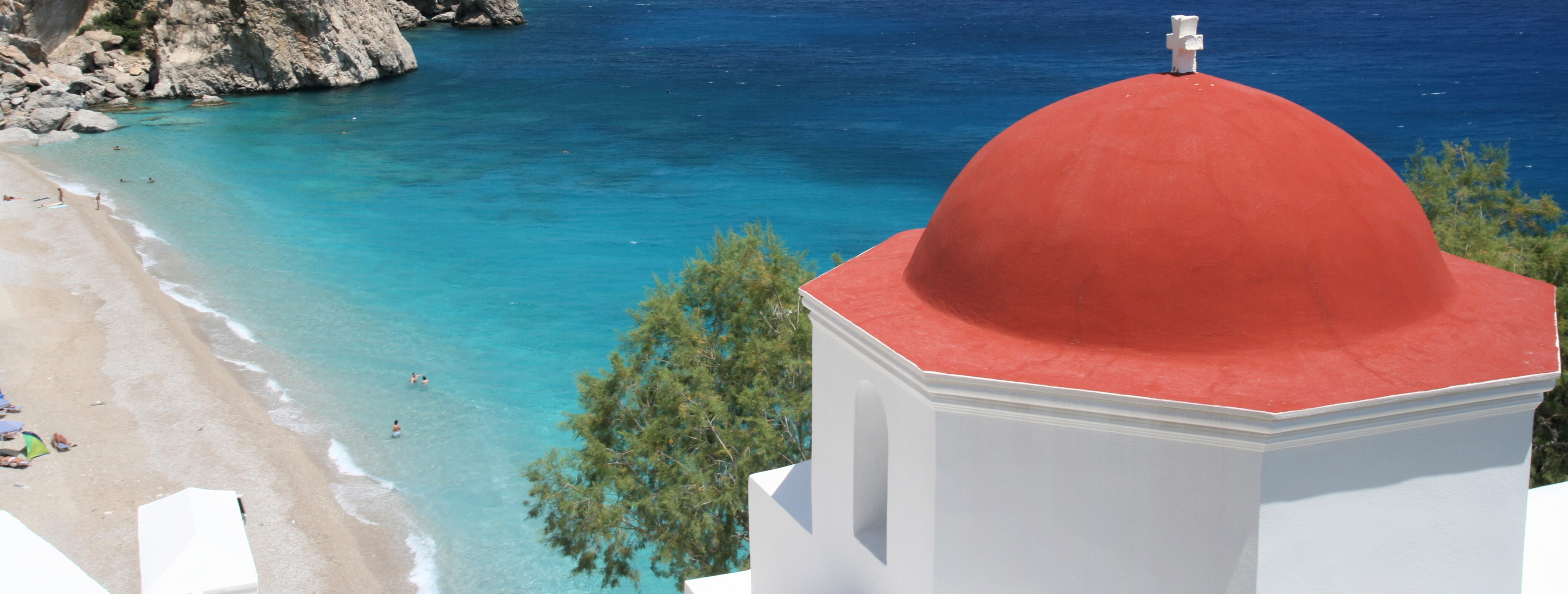 De aanblik van het strand, met direct daarboven, het kerkje met de rode koepel, is erg mooi. Het schijnt hier