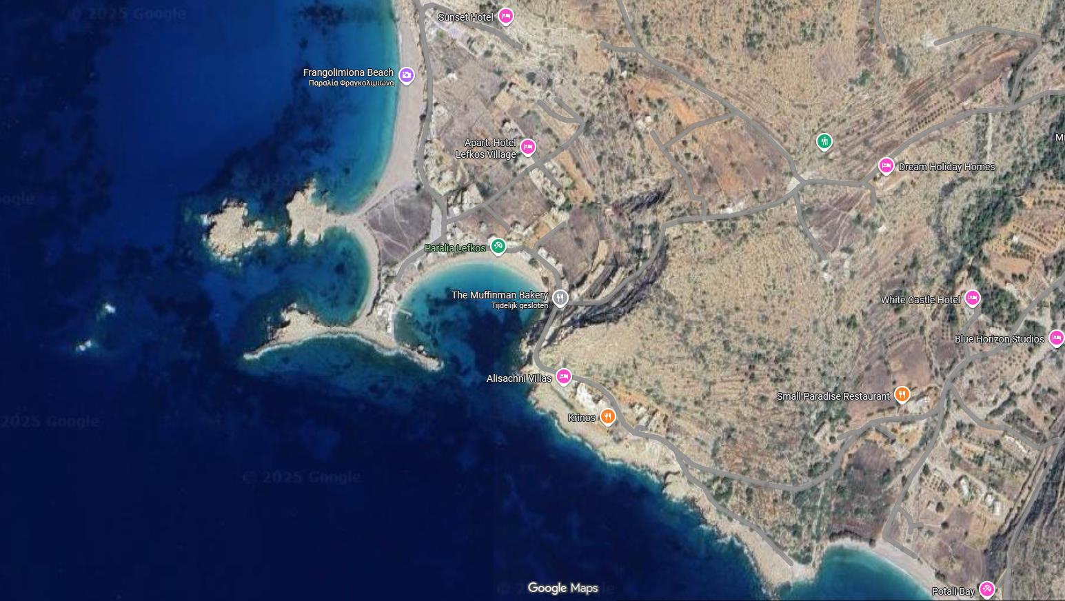 Op de pagina van de sattellietfoto's kun je de omgeving van Lefkos zien vanuit de lucht en