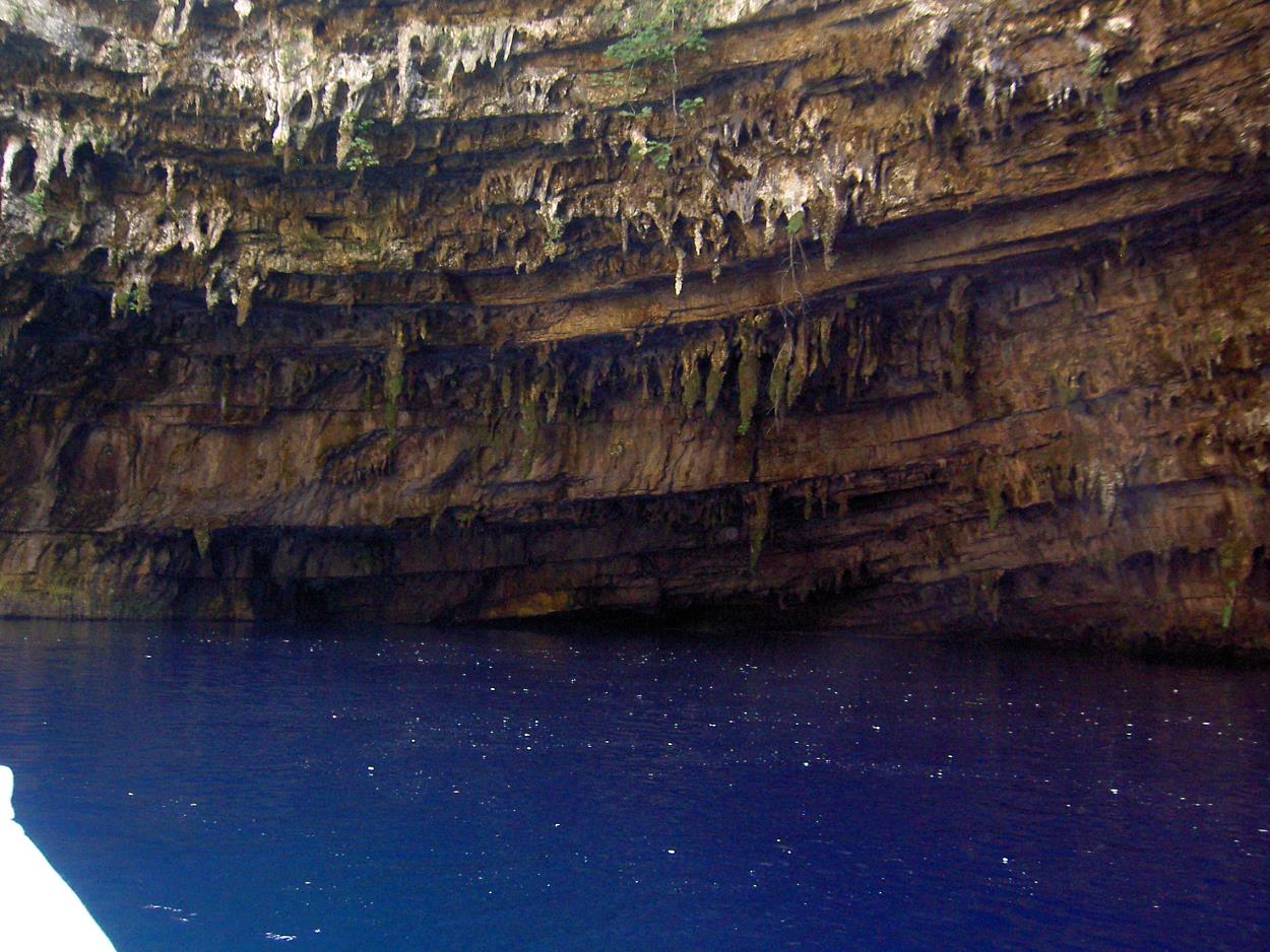 Voorheen werd de kracht van het water gebruikt om molens te laten draaien. Van die molens is er nog een exemplaar te zien. De grot kan dagelijks per boot worden bezocht van 8.00-18.00 uur, maar het is aan te raden om de grot rond het middaguur te bezoeken, dan is de lichtinval het mooist. (zie foto) Op Kefallonia is de film "Captain Corelli's Mandolin" opgenomen, de verfilming van het gelijknamige boek. Het verhaal speelt zich af in deze omgeving. Meerdere opnamen zijn gemaakt op het strand bij Sami. In 1953 is het eiland getroffen door een aardbeving. Hierdoor is zo'n 70% van de gebouwen verwoest en hebben veel inwoners het eiland verlaten om ergens anders een nieuw leven op te bouwen. Alleen het dorpje Fiskardo, in het noorden van het eiland, is bewaard gebleven. Dat is dan ook de enige stad die nog beschikt over huizen uit de 18e en 19e eeuw. |
