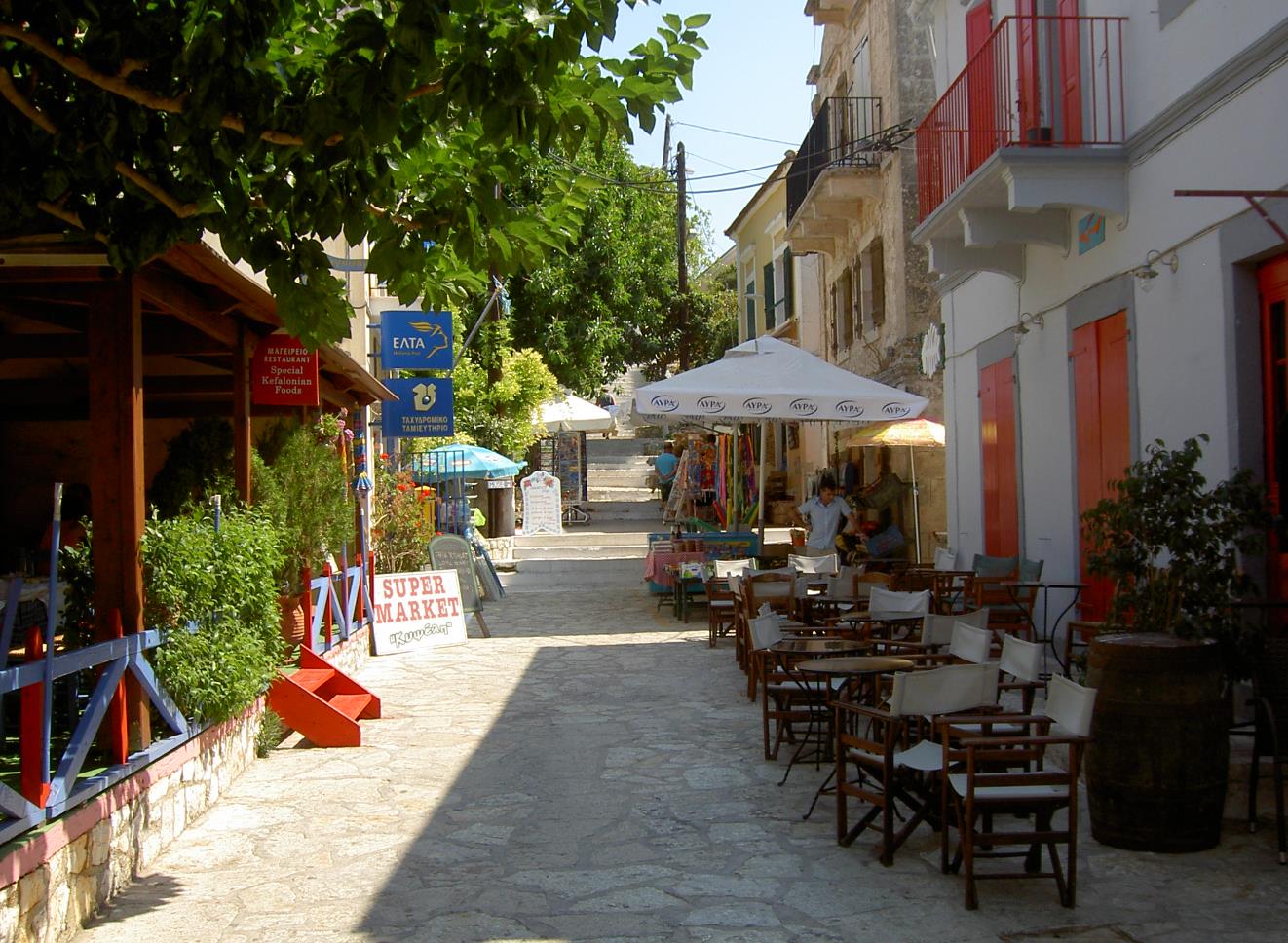 in de richting van Mesovounia en Pyrgos.