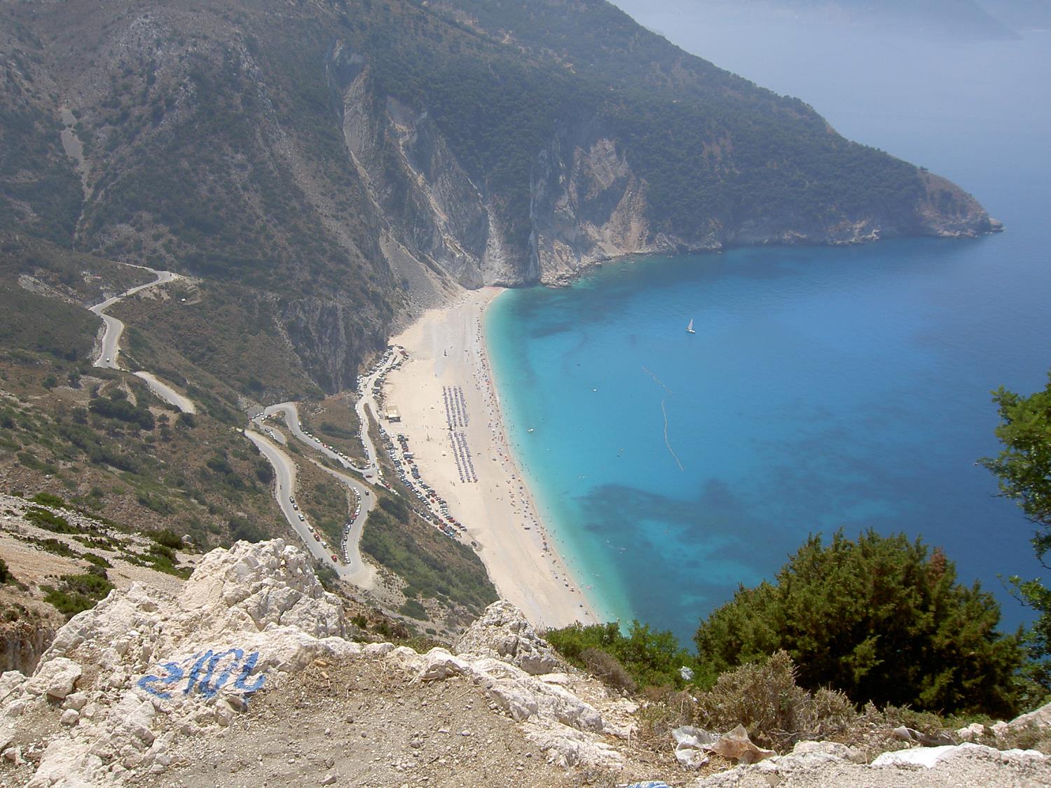 Ten noorden van Argostoli ligt het strand Myrtos, een prachtig strand dat in de top 5 van werelds