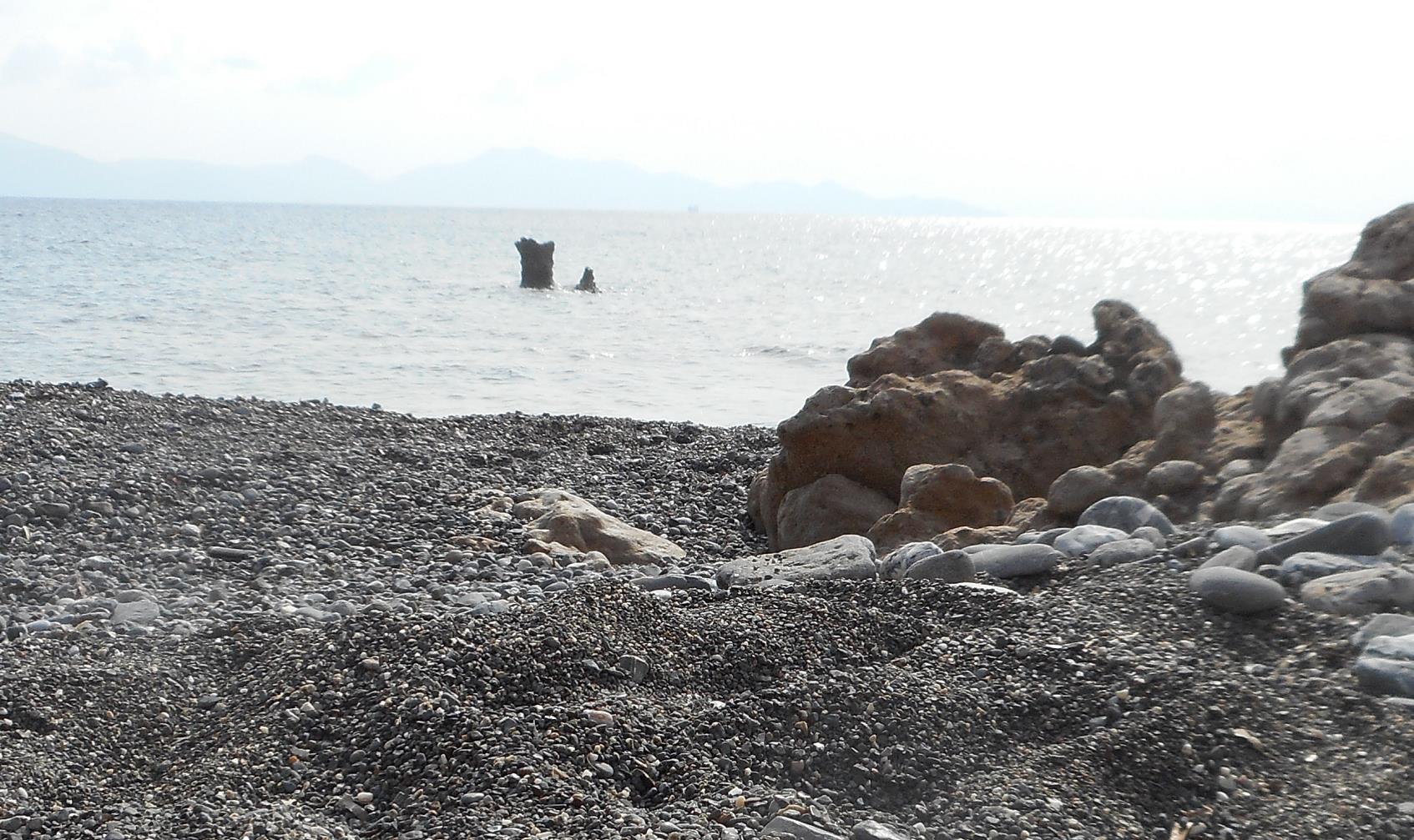 De weg langs de noord-oostkust houdt op bij Thermi. Maar een paar kilometer vóór Thermi kom je langs het strand van Agios Fokas.