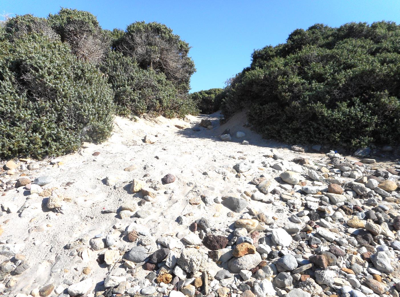 met een hoogte van 428 meter. Vanaf de hoofdweg zijn er enkele kleinere zijwegen naar de lagere delen en het strand.