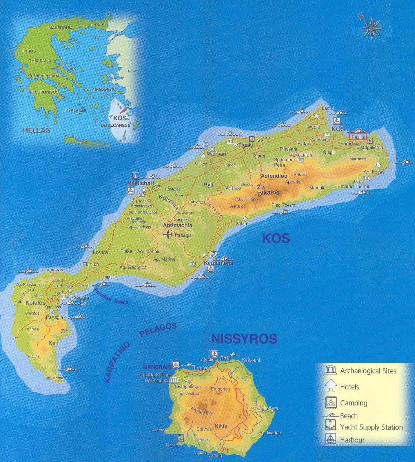 Met de scooter (50 cc) is het ongeveer 45 minuten van Kos-stad naar Kardamena en van Kardamena naar Kefalos is eveneens 45 minuten.