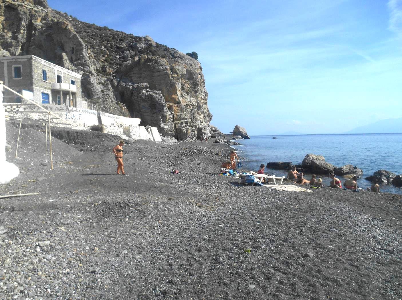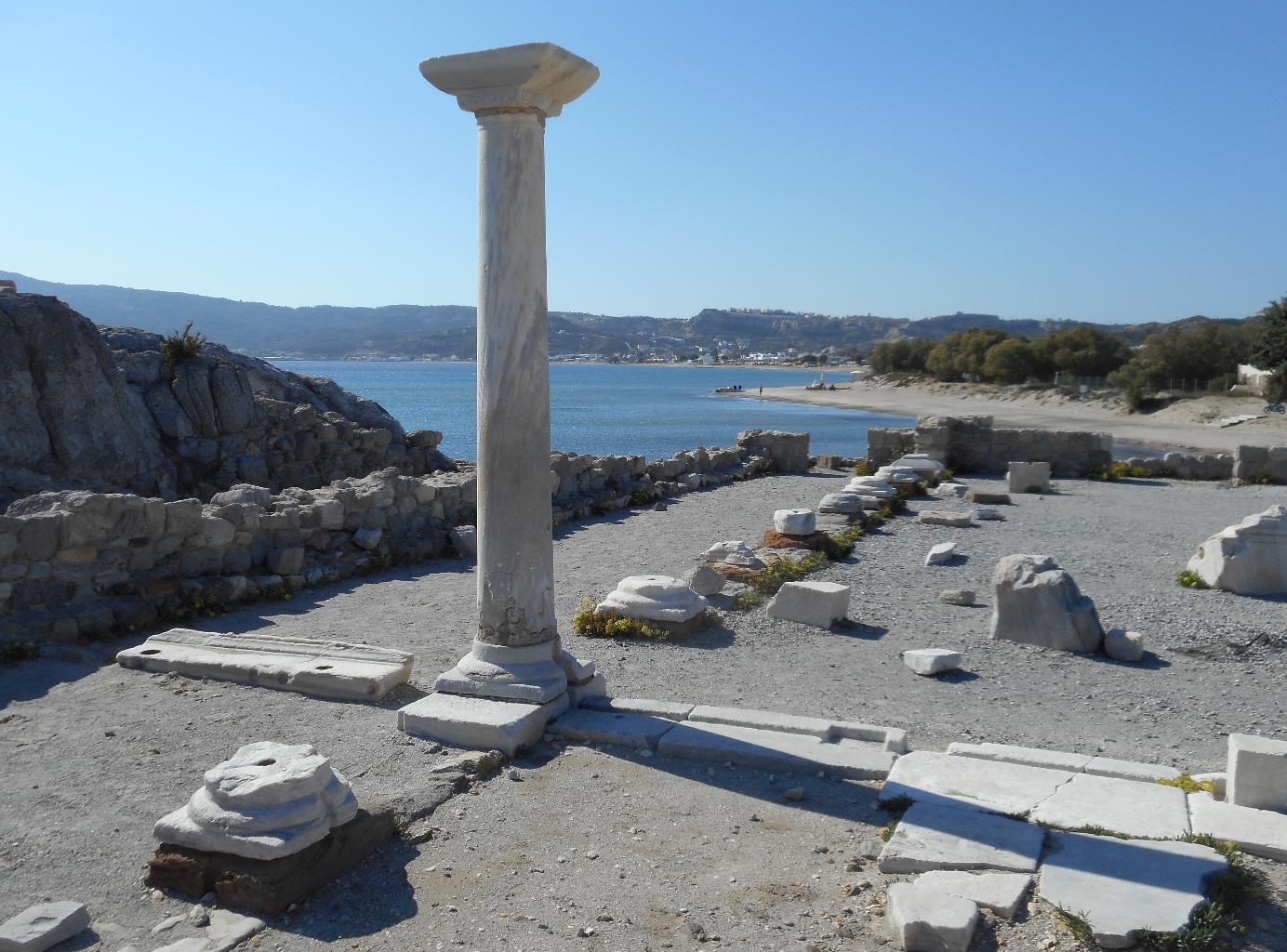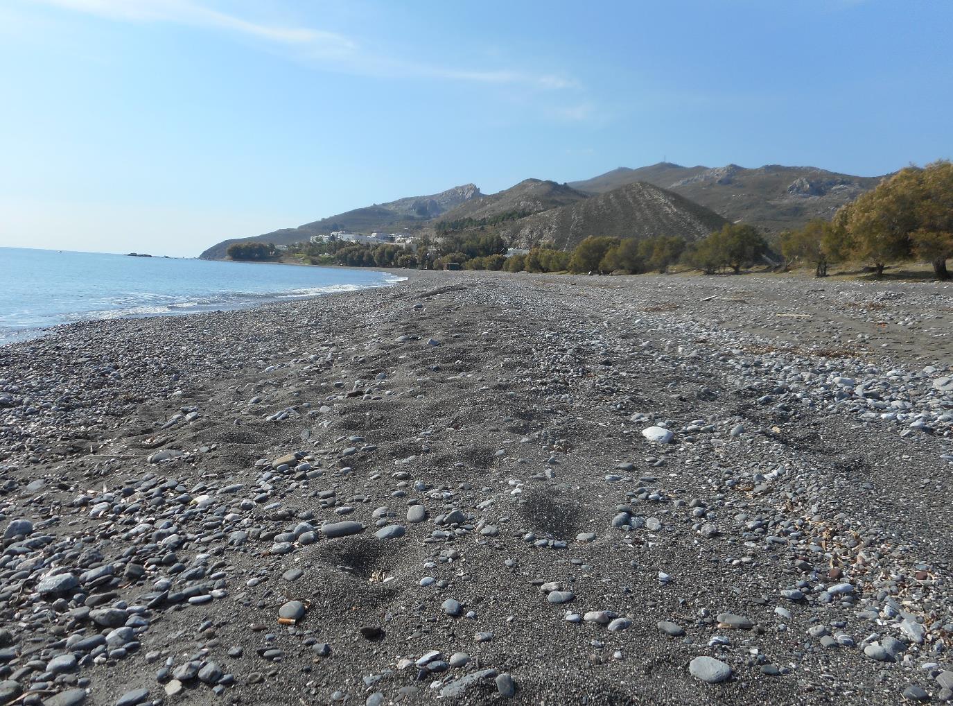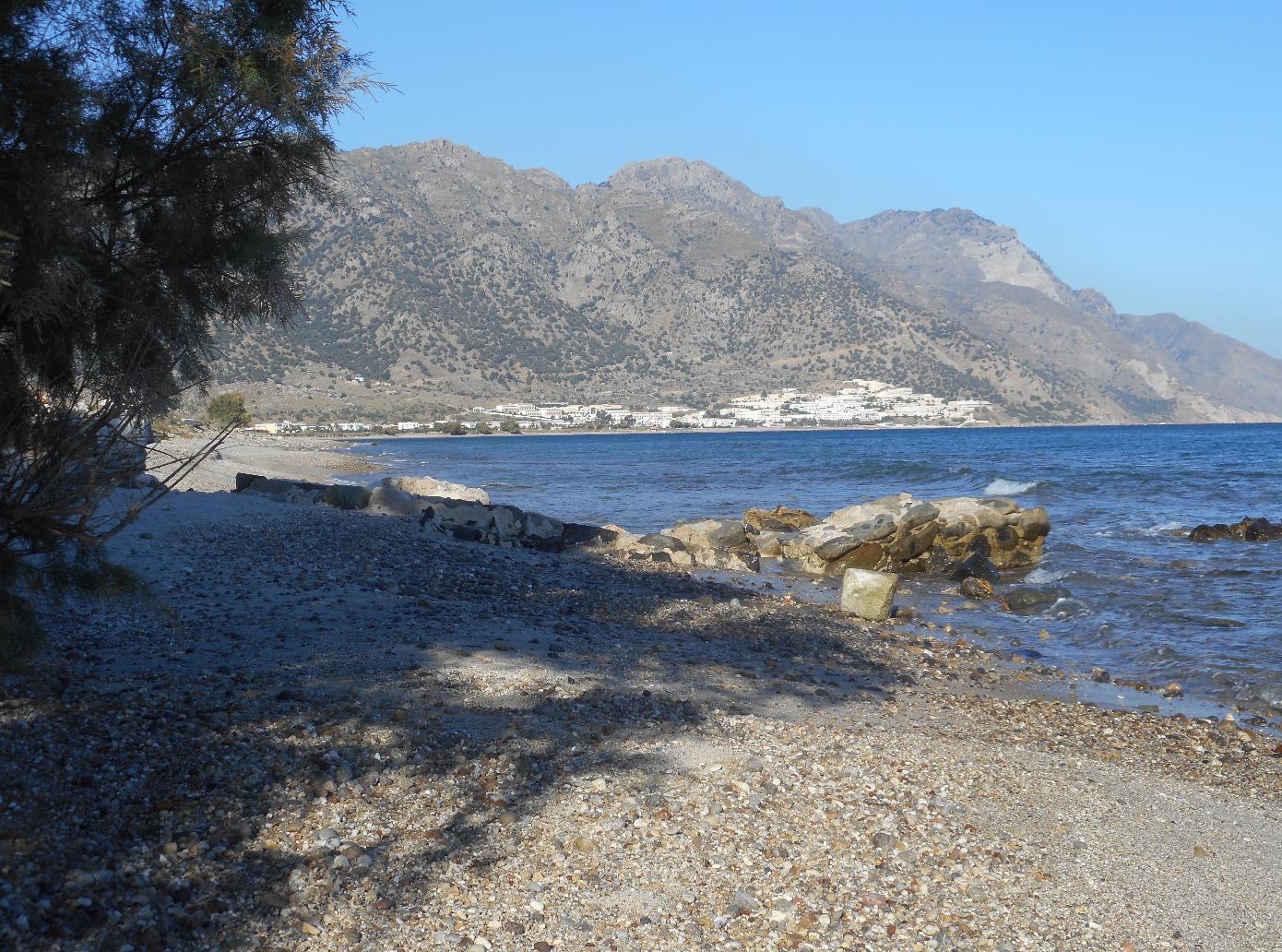Het strand tussen Kardamena en Valari (foto links) is redelijk breed, en vrij rustig. In het voor- en naseizoen bijna verlaten. Vanwege