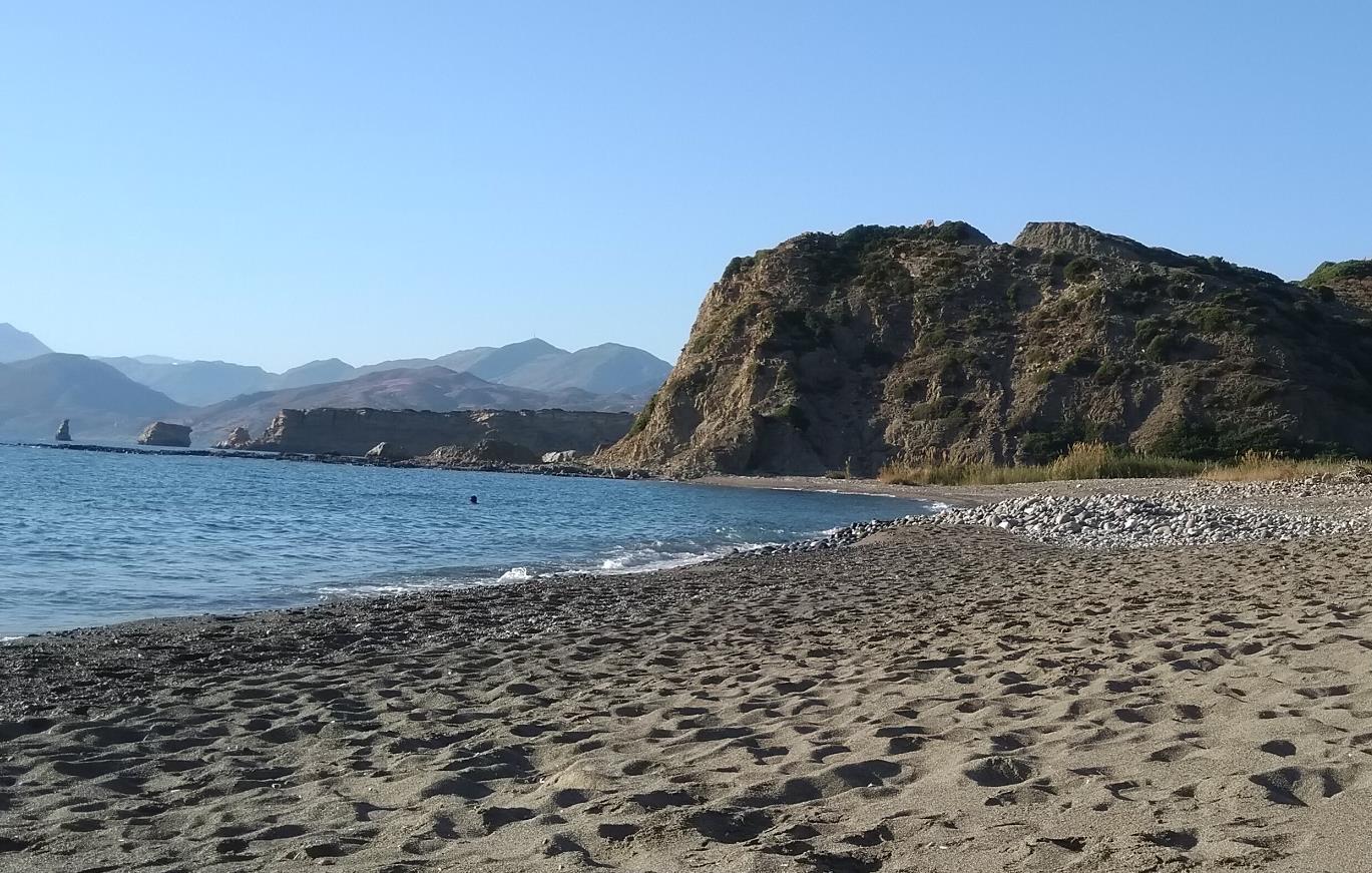 Je kunt de stranden van Ag. Pavlos ook bereiken door, dichter bij het dorp, een heel erg steile duinwand af te klauteren.