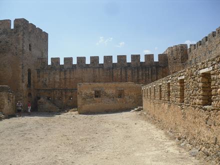 aan de doorgaande weg ligt van Skalotí naar Frangokastello. Het kasteel is vaak te bezichtigen, maar in 2019 was het gesloten vanwege werkzaamheden. Tegenover het kasteel ligt een zeer groot
