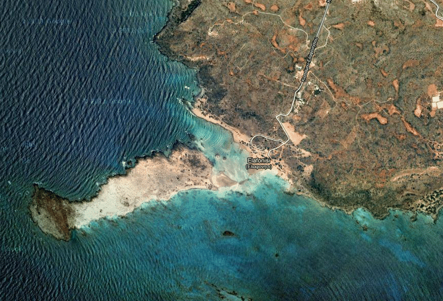 De ambiance van het mooie zandstrand, met het uitzicht op het kleine eilandje Elafonissi is prachtig.