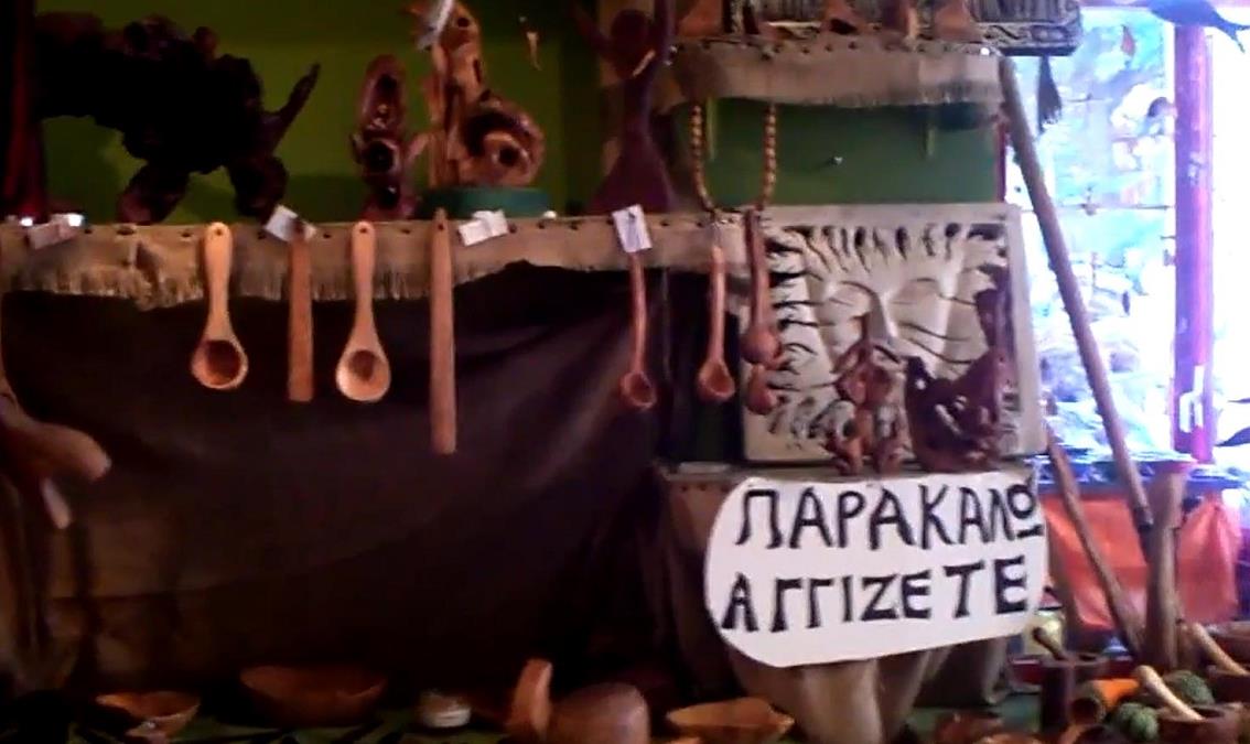 daar te gaan kijken. In de winkel stonden bordjes met de mededeling: "nothing 1 euro" en "parakalo aggizete"