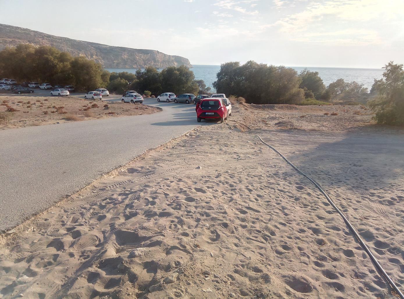 bij het strand. Wanneer je vanaf Pitsidia binnendoor rijdt, kun je de auto langs de weg parkeren, vóór dat de drukte begint.