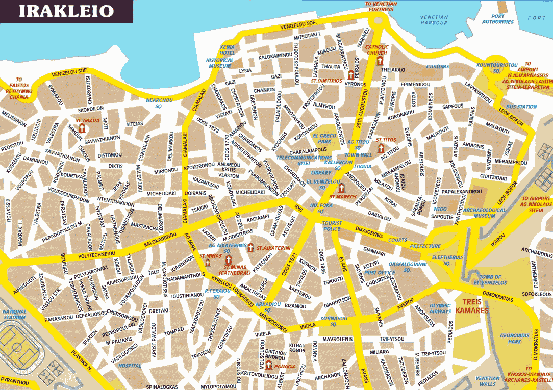Er zijn goede verbindingen met de rest van het eiland, vanuit de hoofdstad. Iraklion ligt aan de hoofdweg die van
