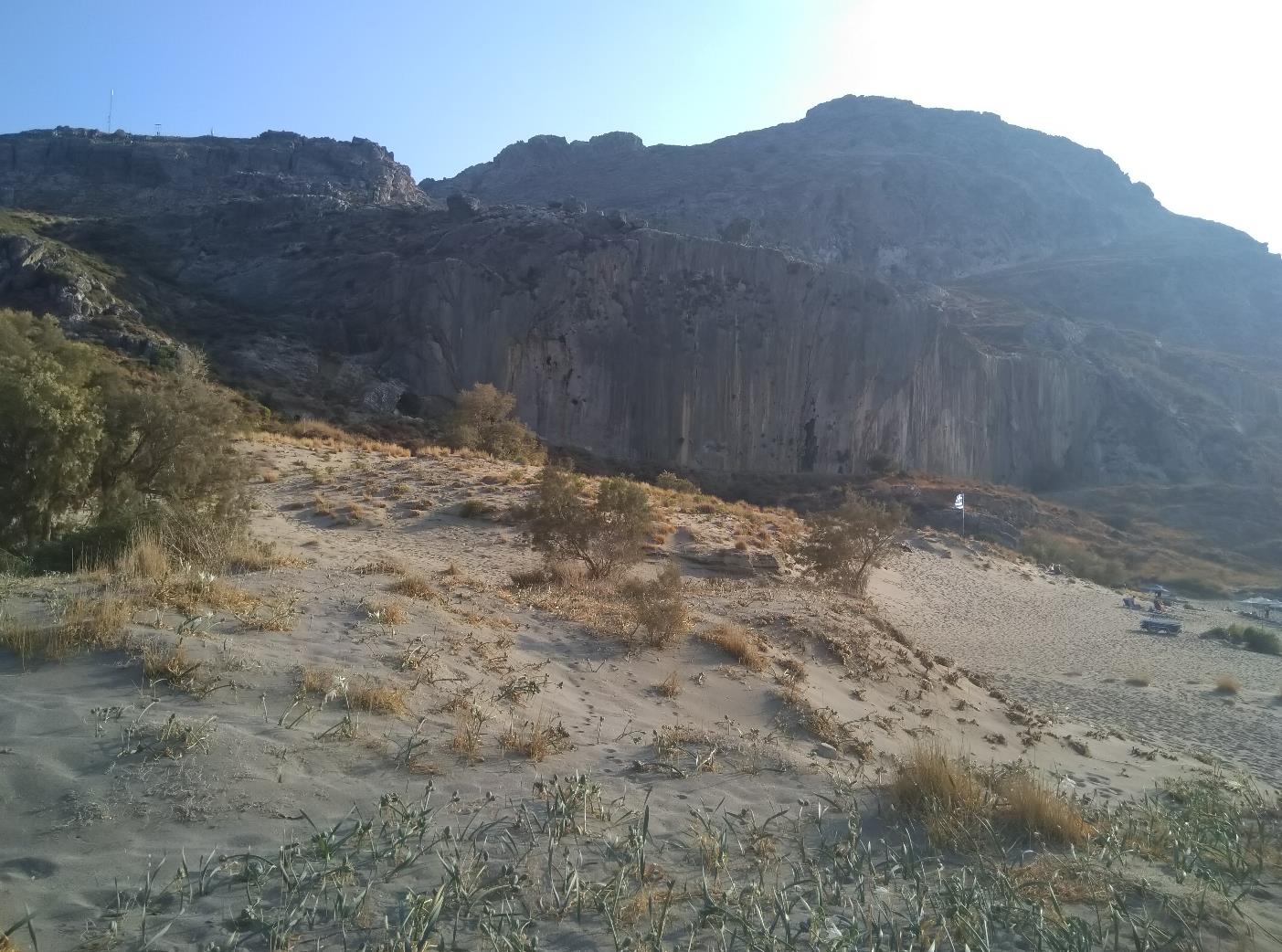 Vanaf de rotswand bij het Plakias-strand loopt een pad langs de berg naar een tunnel, welke uitkomt