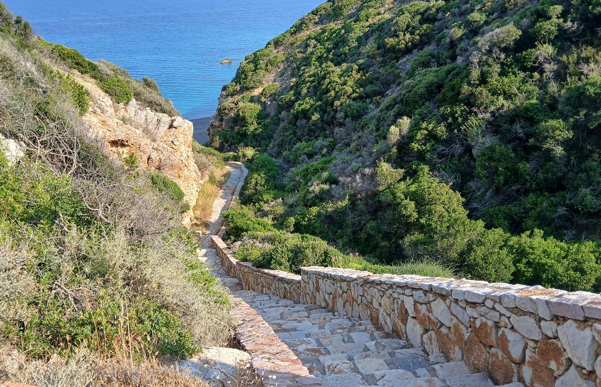 Om op het strand te komen moet je van de trap afdalen, 162 treden naar beneden. Het kost even wat tijd en moeite, maar dan heb je