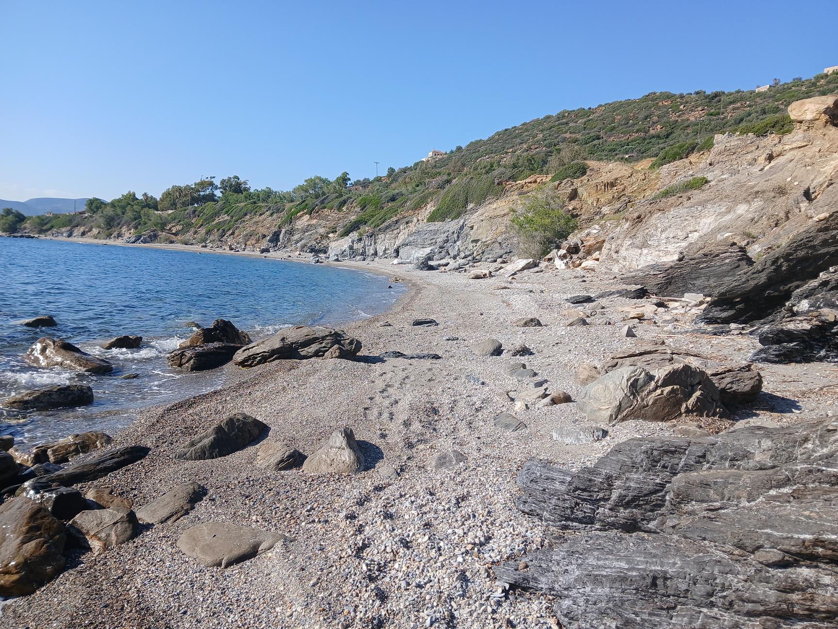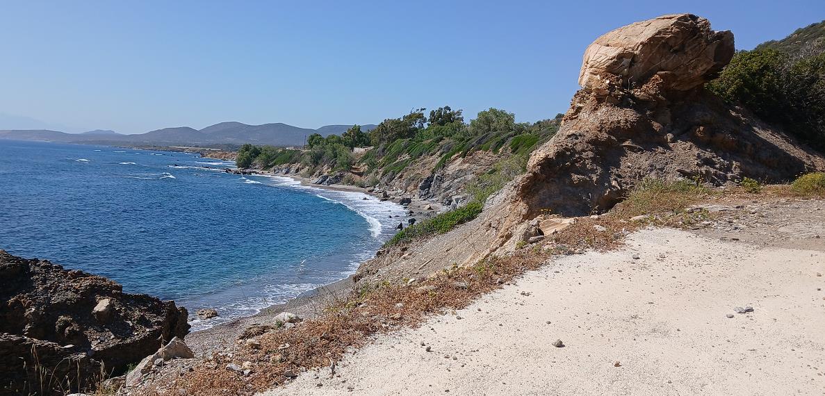 Het strandje op deze pagina, ten zuiden van Platanias, bestaat deels uit zand en deels uit kiezels. Er zijn in ieder geval een paar
