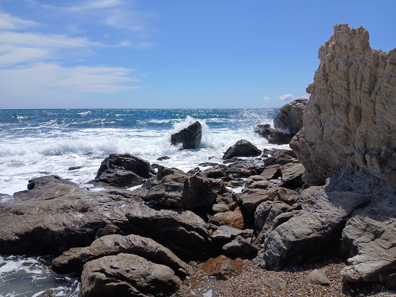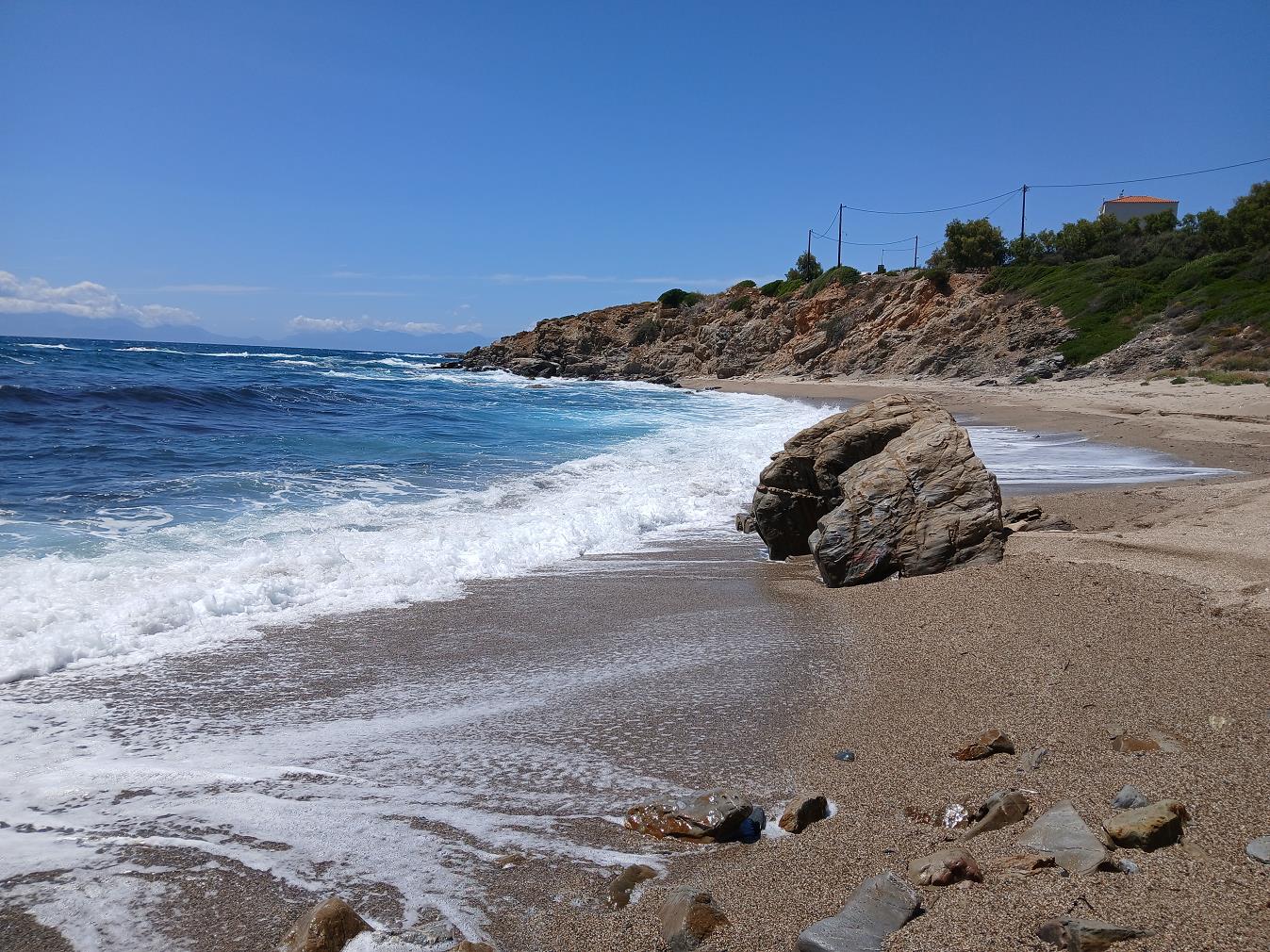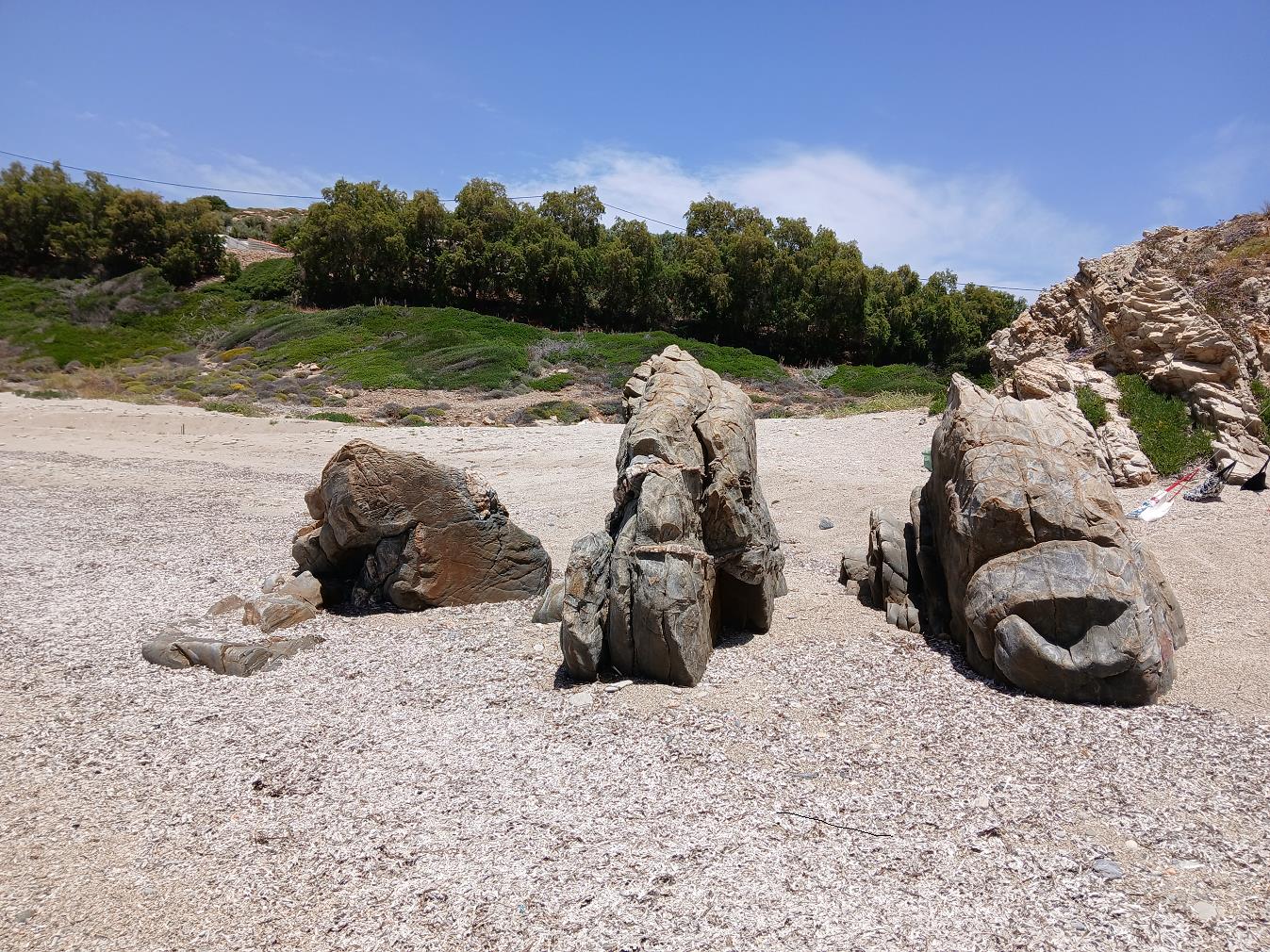 Het strandje bestaat voor een groot deel uit fijne kiezel en is erg comfortabel om te zitten en te liggen. Langs de rotsen aan de zijkant groeit kritamo.