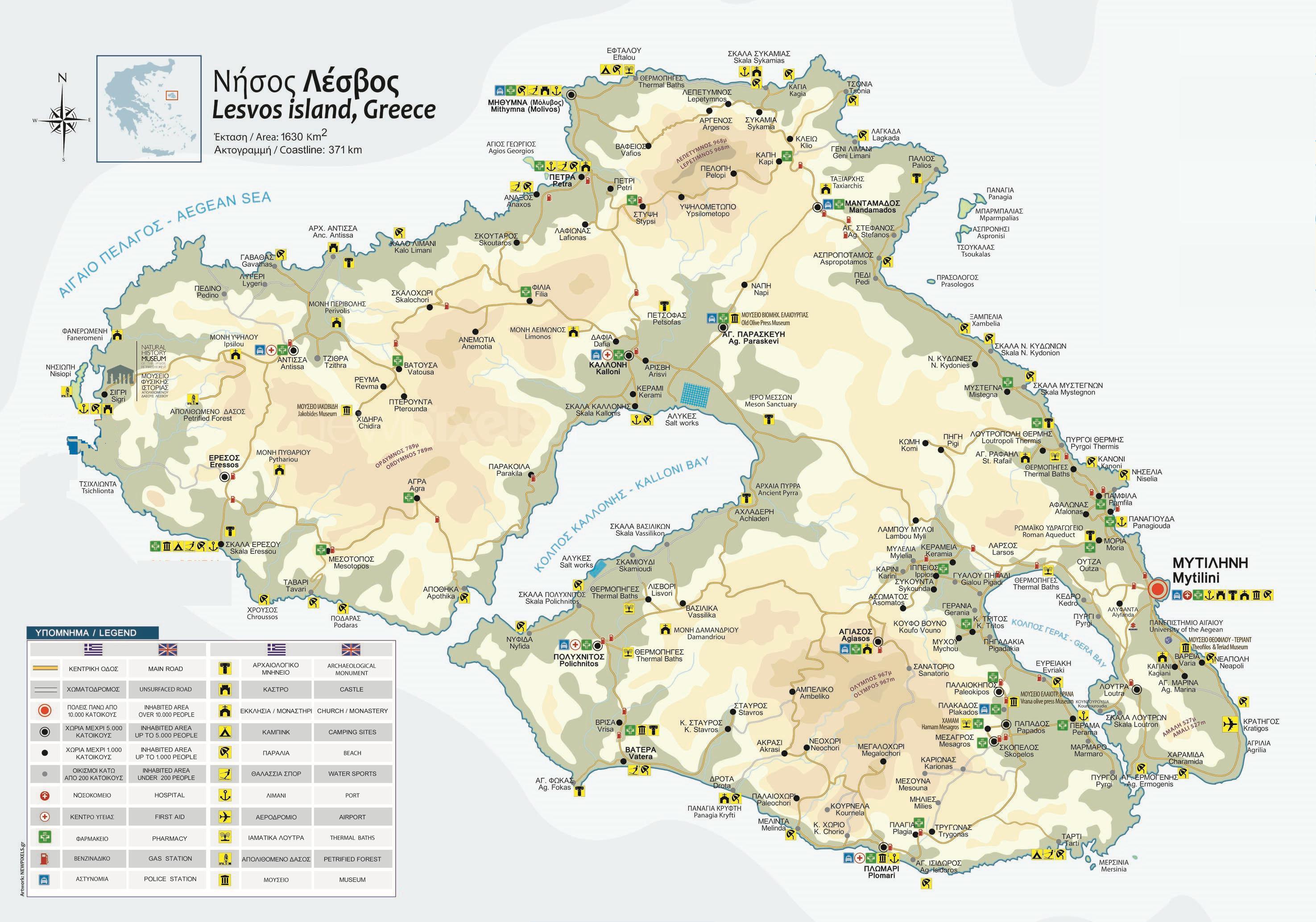 grote kaart De route die we reden op Lesbos