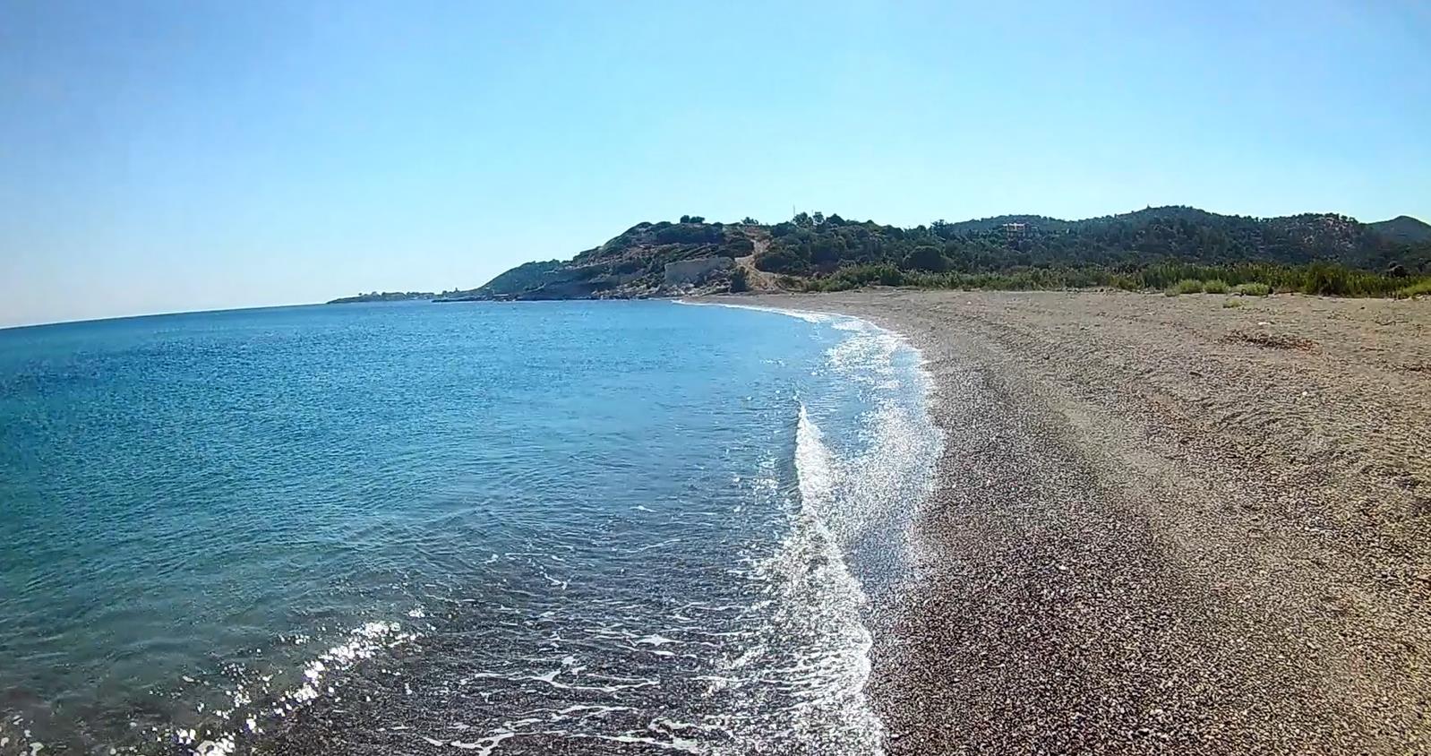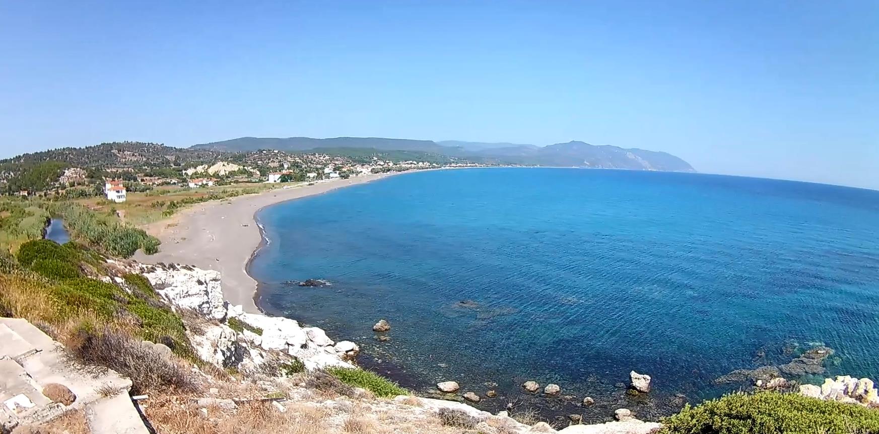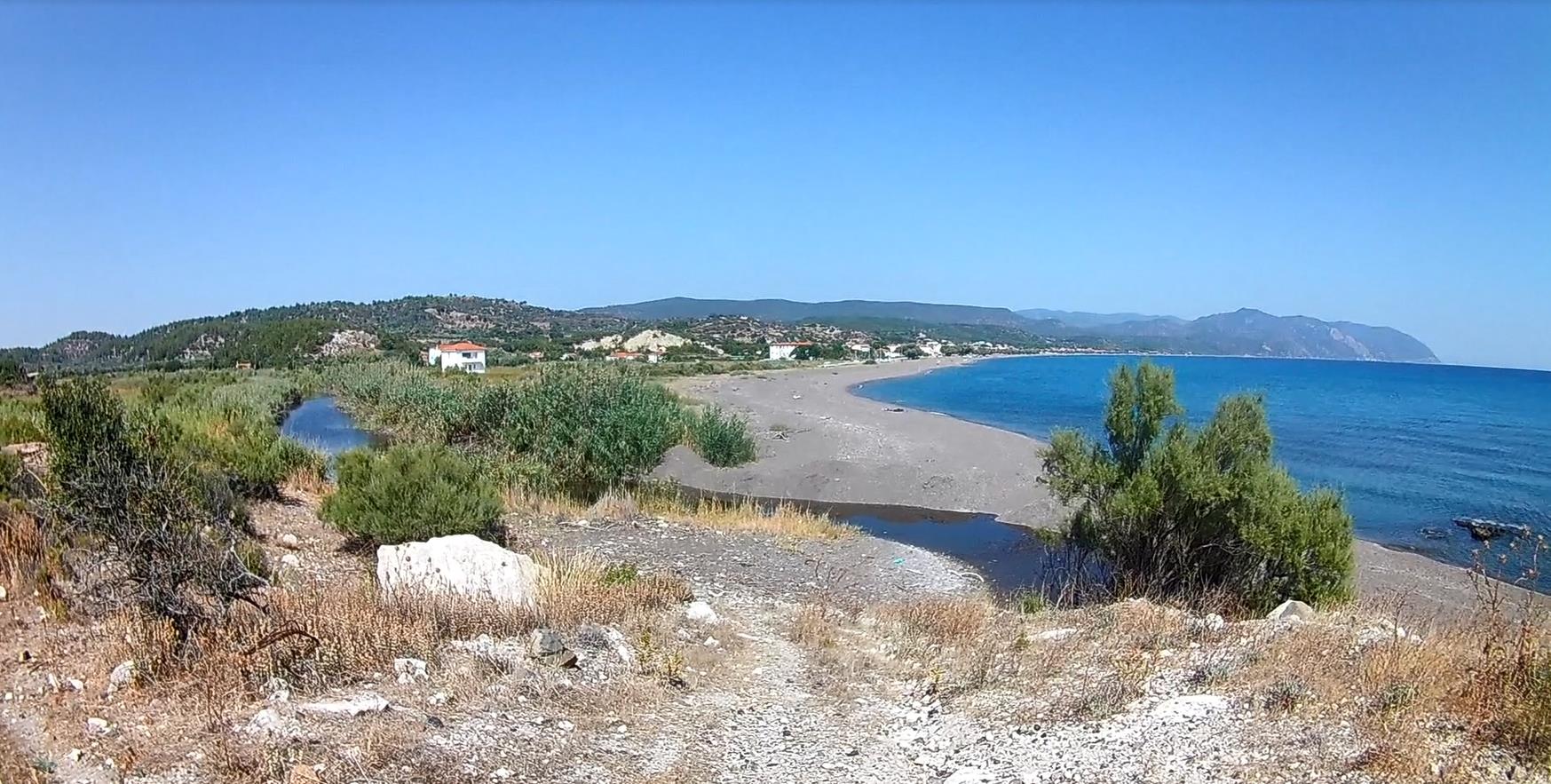 rij je richting Plomari en Agiassos. Je komt dan langs een strand van kilometers lang,
