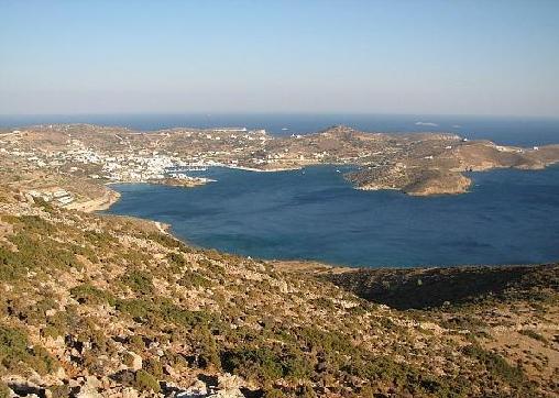 klein eilandje, ongeveer 10 vierkante kilometer groot. In de haven zie je meteen de kerk van Agios Ioannis