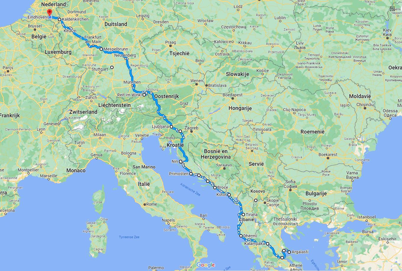 | De totale reis was 9195 kilometer. Op de eerste twee kaartjes zie je de gereden route op de heenweg, op het derde de terugweg. Het vierde plaatje gaat naar onze nieuwe hobby: putdeksels verzamelen. |