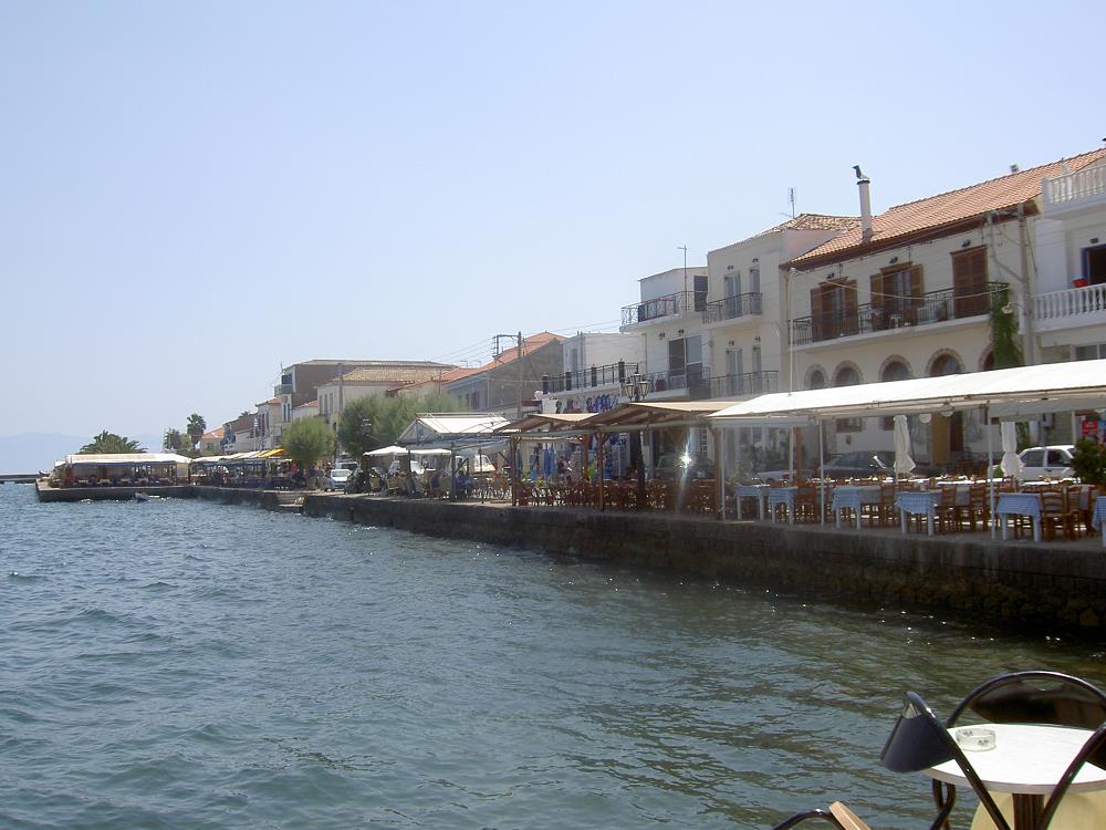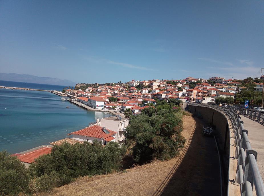 Koroni ligt op een klein schiereilandje en heeft een gezellige boulevard met diverse eetgelegenheden en bovenop de heuvel,