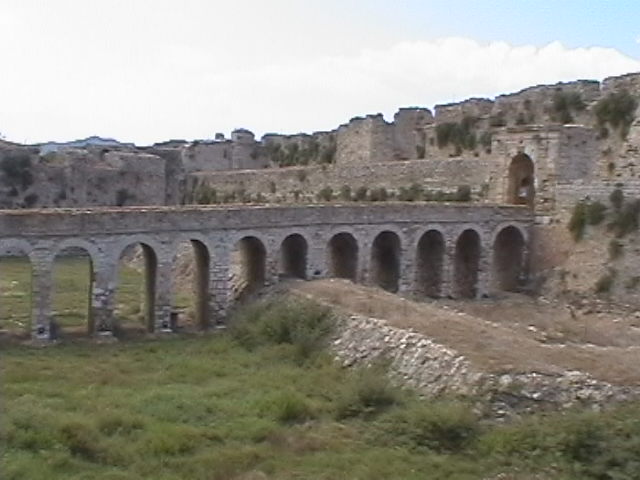Precies 2 meter voor het plaatsnaambordje van Methoni, wanneer je komt uit Finikounda, loopt een weggetje naar links, naar de kust.