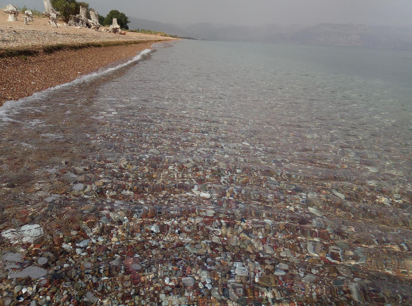 staan er nog steeds en bepalen voor een groot deel de aanblik van het strand. Het strand bestaat uit zand, met een strook kiezels bij en in het water.