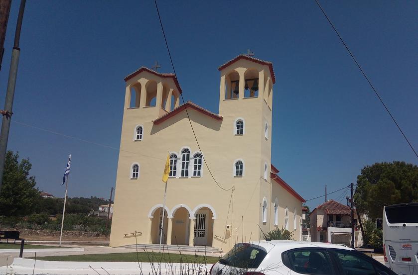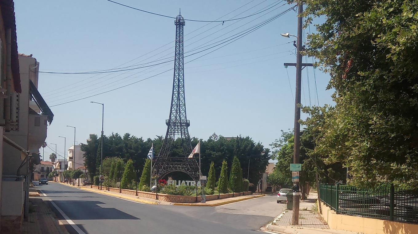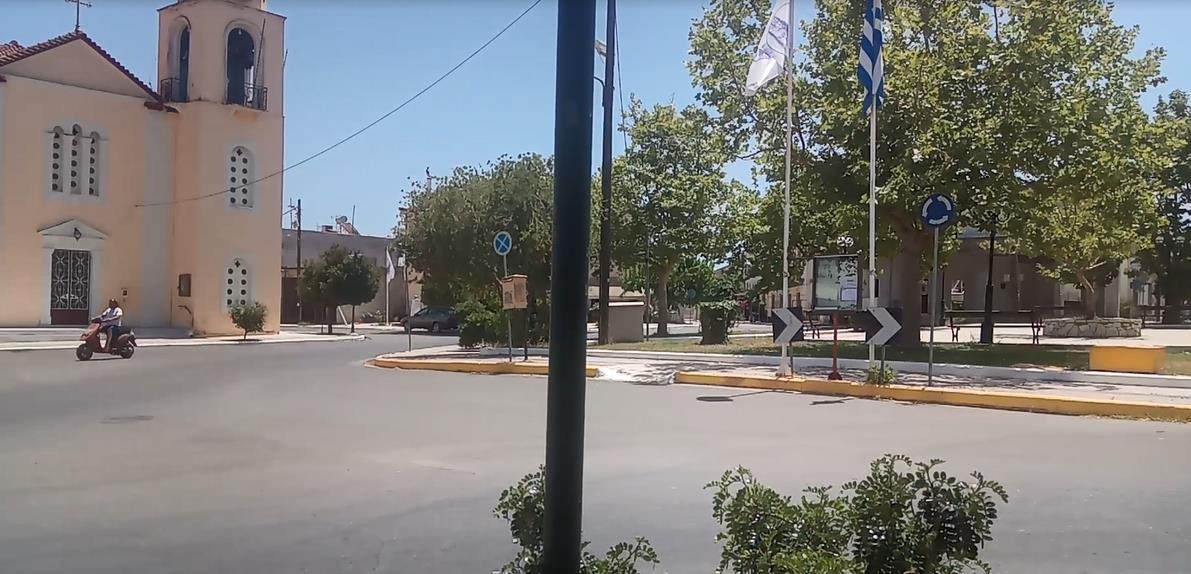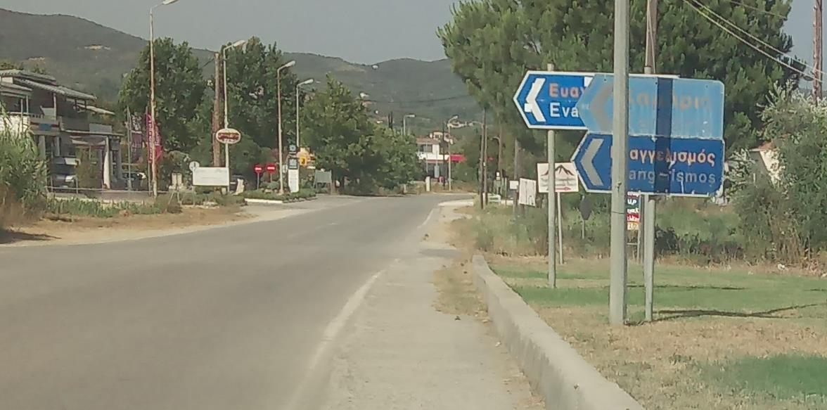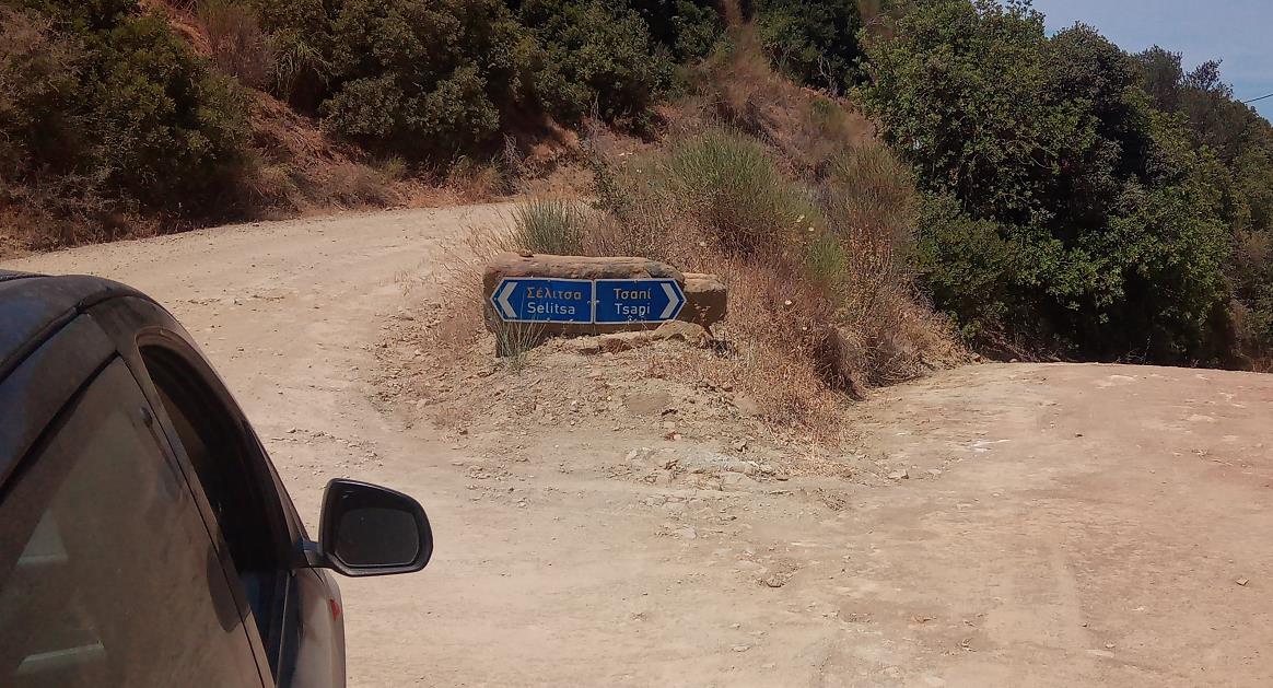 Rizomilos rechts afslaan. Er is daar een groot viaduct over de rivier en net daarvoor moet je afslaan. Er staat een bordje met een