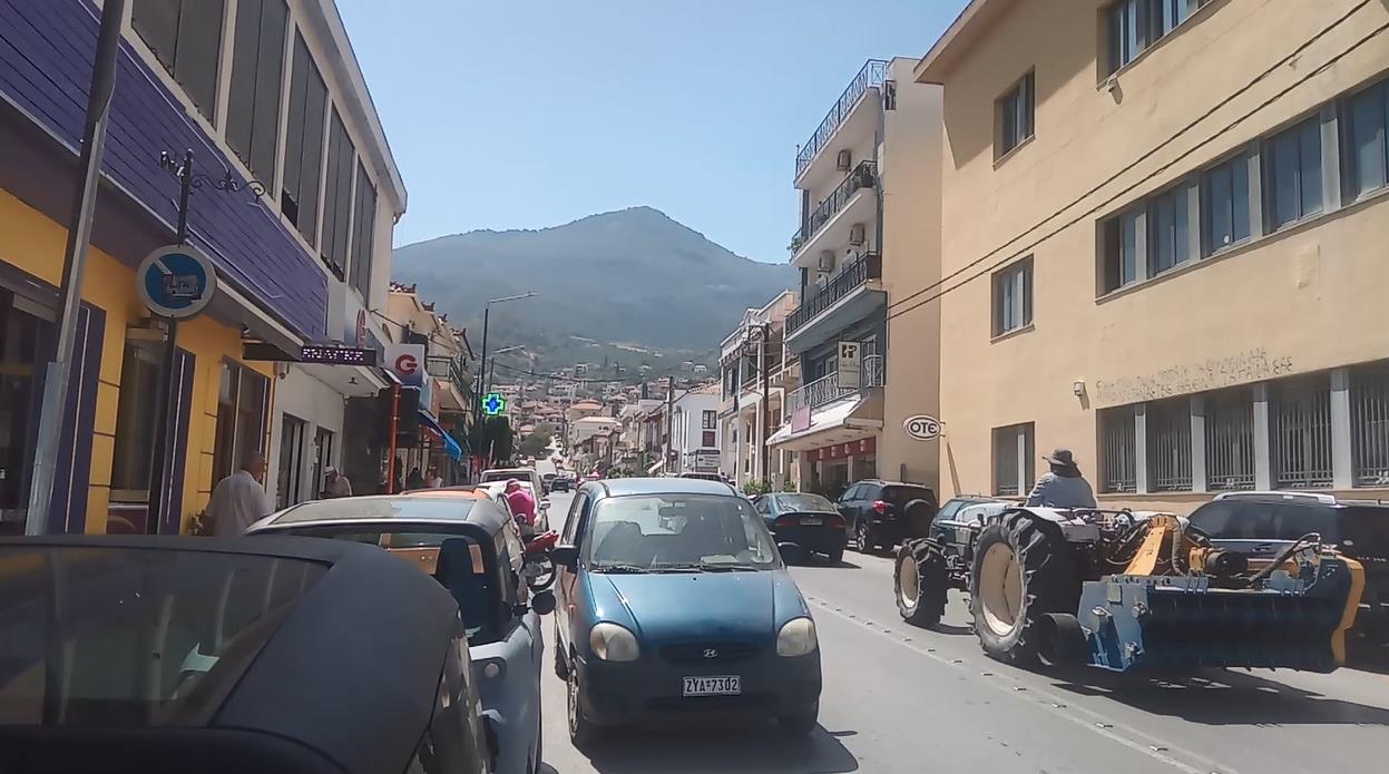 | donderdag 6 juni 2024 - naar Kalamata en terug via Velíkas-beach Het was vandaag aardig bewolkt en er hing zelfs een beetje dreiging in de lucht, alsof het zou kunnen gaan regenen. Geen ideaal strandweer dus. Daarbij komt, dan onze usb-oplader, waaraan je 4 apparaten tegelijk kon opladen, kapot was gegaan. Het apparaatje was heet geworden en laadde de aangehangen apparaten niet meer op. Het was dus tijd om een nieuwe te kopen. Omdat we hiervoor in Koroni waarschijnlijk niet zouden kunnen slagen, besloten we naar Kalamata te rijden. Daar wilden we toch nog één of twee keer een dag besteden. De naam Kalamata is ontstaan, zegt men, omdat op deze plaats een keer een icoon zou zijn gevonden van Maria, afgebeeld met erg mooie ogen. Kala betekent goed of mooi en mata of matia betekent ogen. Kala-matia werd Kalamata. Het was ongeveer een uur en een kwartier rijden naar de hoofdstad van Messinia. Er loopt een tweebaansweg met heel veel bochten en inhalen is bijna overal verboden. Echt snel rijden zit er dus niet in. Bovendien is het de enige weg.