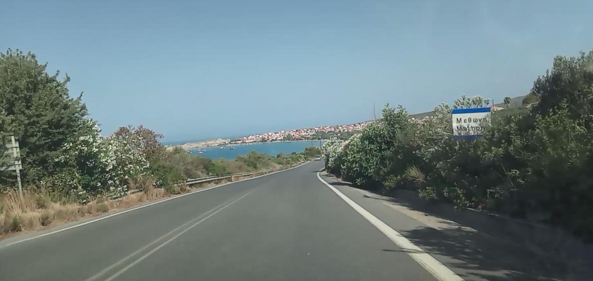 uiteindelijk uit op de hoofdweg, net voor Rizomilos. Wanneer je deze afslag zou nemen vanaf Koroni, moet je dus een klein eindje voorbij